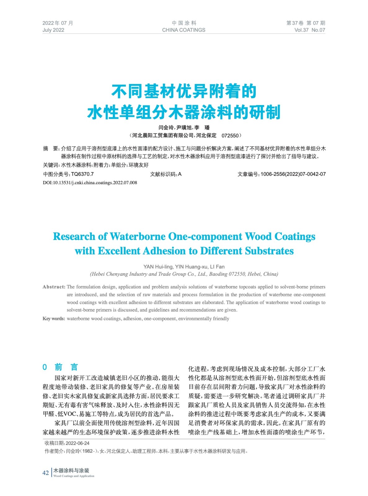 不同基材優(yōu)異附著的水性單組分木器涂料的研制