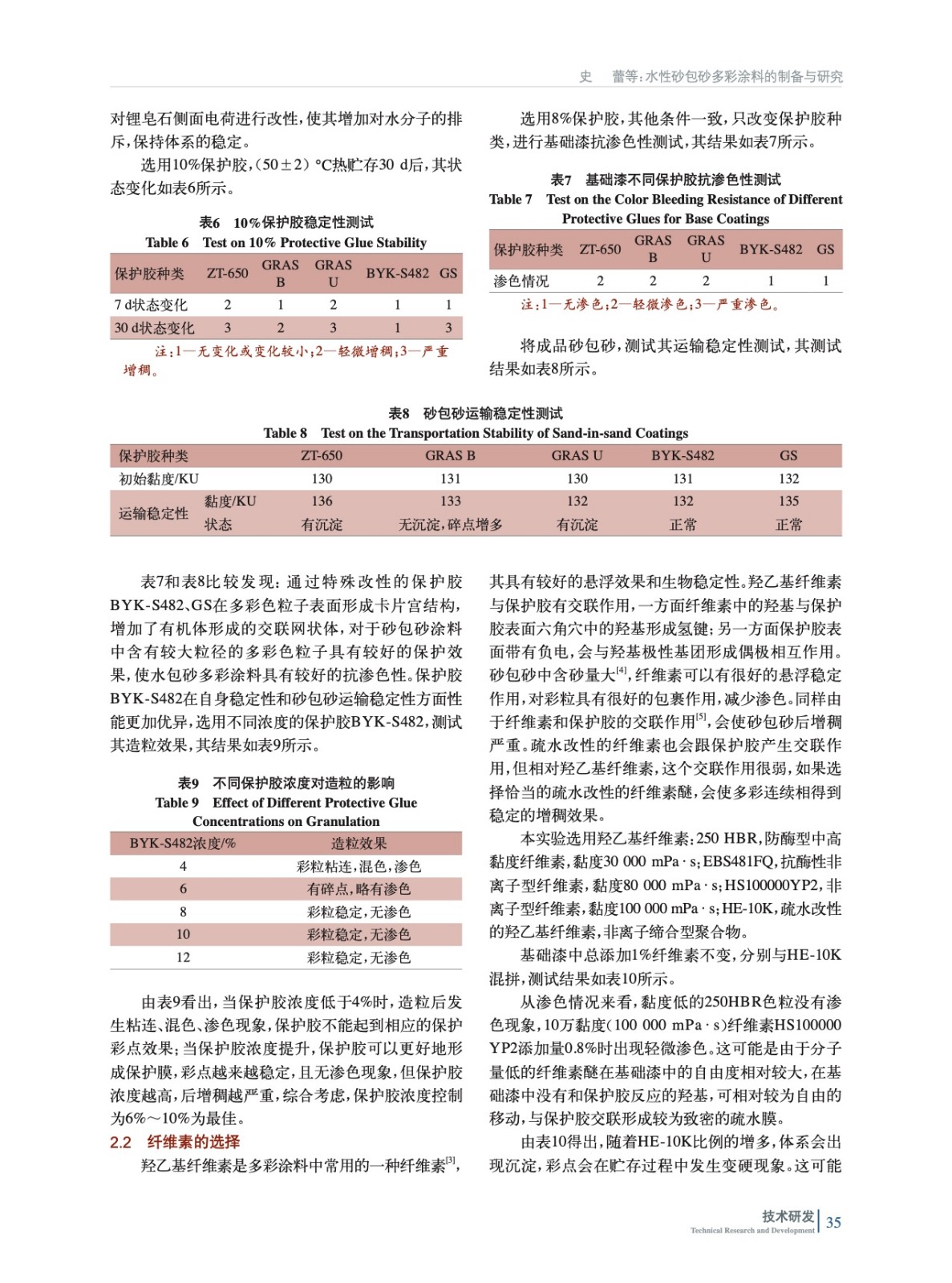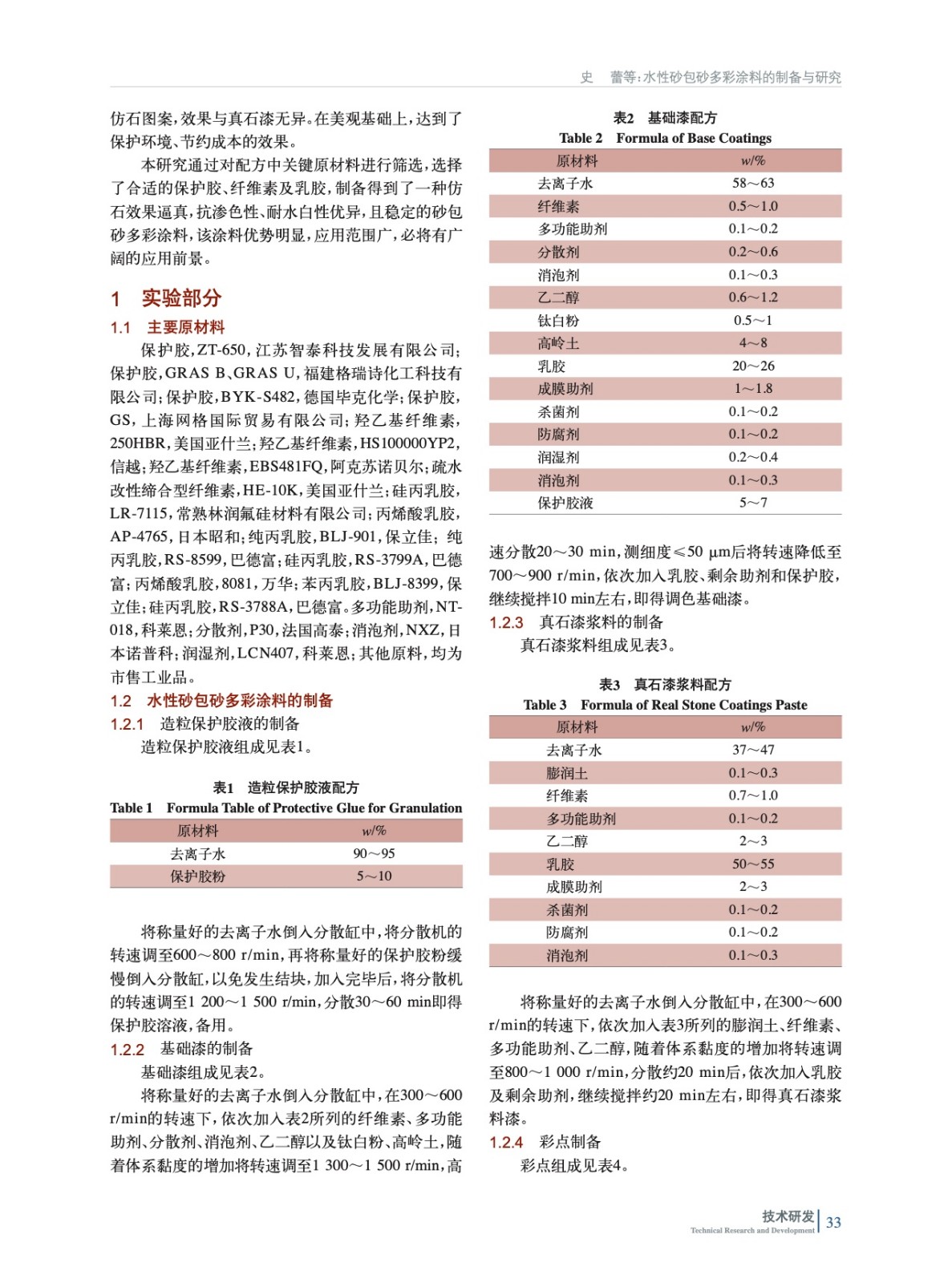 摘要:介紹了一種可以與真石漆相媲美的砂包砂涂料的制備,從保護(hù)膠、纖維素、乳膠方面平行實(shí)驗(yàn)對比,最終確定了其最佳添加量。實(shí)驗(yàn)結(jié)果表明,該砂包砂涂料,體系穩(wěn)定,耐水白性優(yōu)異,抗?jié)B色性好,耐候性佳,施工美觀,凹凸感強(qiáng),且較真石漆耗量少,價(jià)格低,前景可觀。