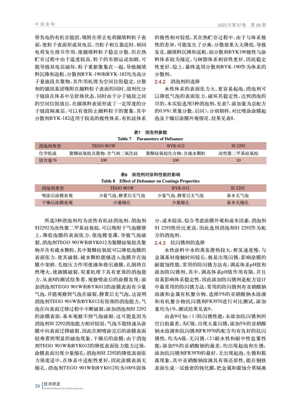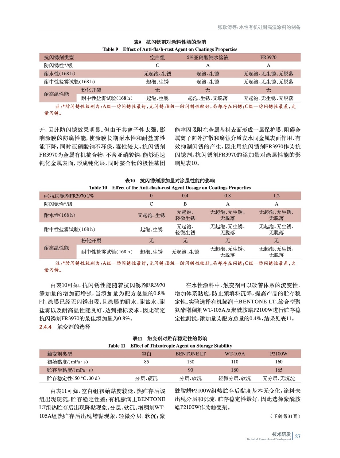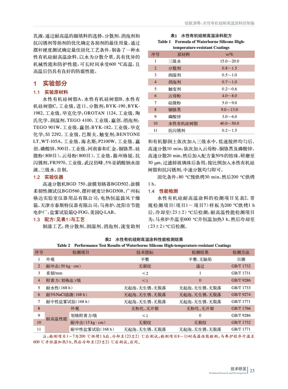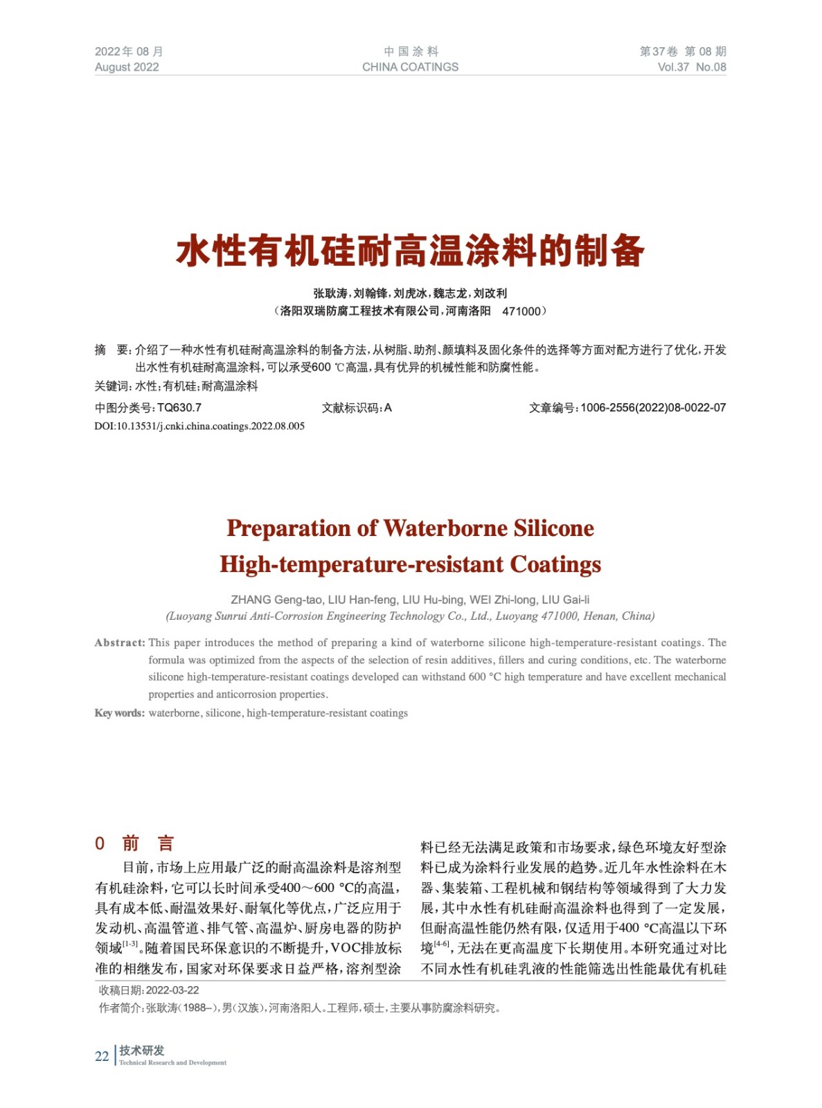 摘要:介紹了一種水性有機(jī)硅耐高溫涂料的制備方法,從樹脂、助劑、顏填料及固化條件的選擇等方面對(duì)配方進(jìn)行了優(yōu)化,開發(fā)出水性有機(jī)硅耐高溫涂料,可以承受600 ℃高溫,具有優(yōu)異的機(jī)械性能和防腐性能。