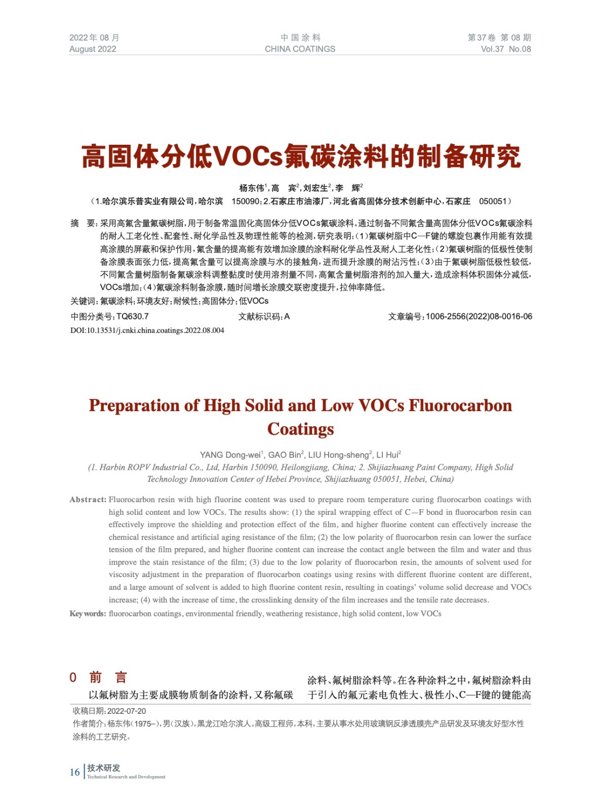 本文系作者@楊東偉,高 賓,劉宏生,李 輝 授權中國涂料網發表,并經中國涂料網編輯,未經允許不得轉載,如需轉載請聯系chinacoatingnet@vip.163.com