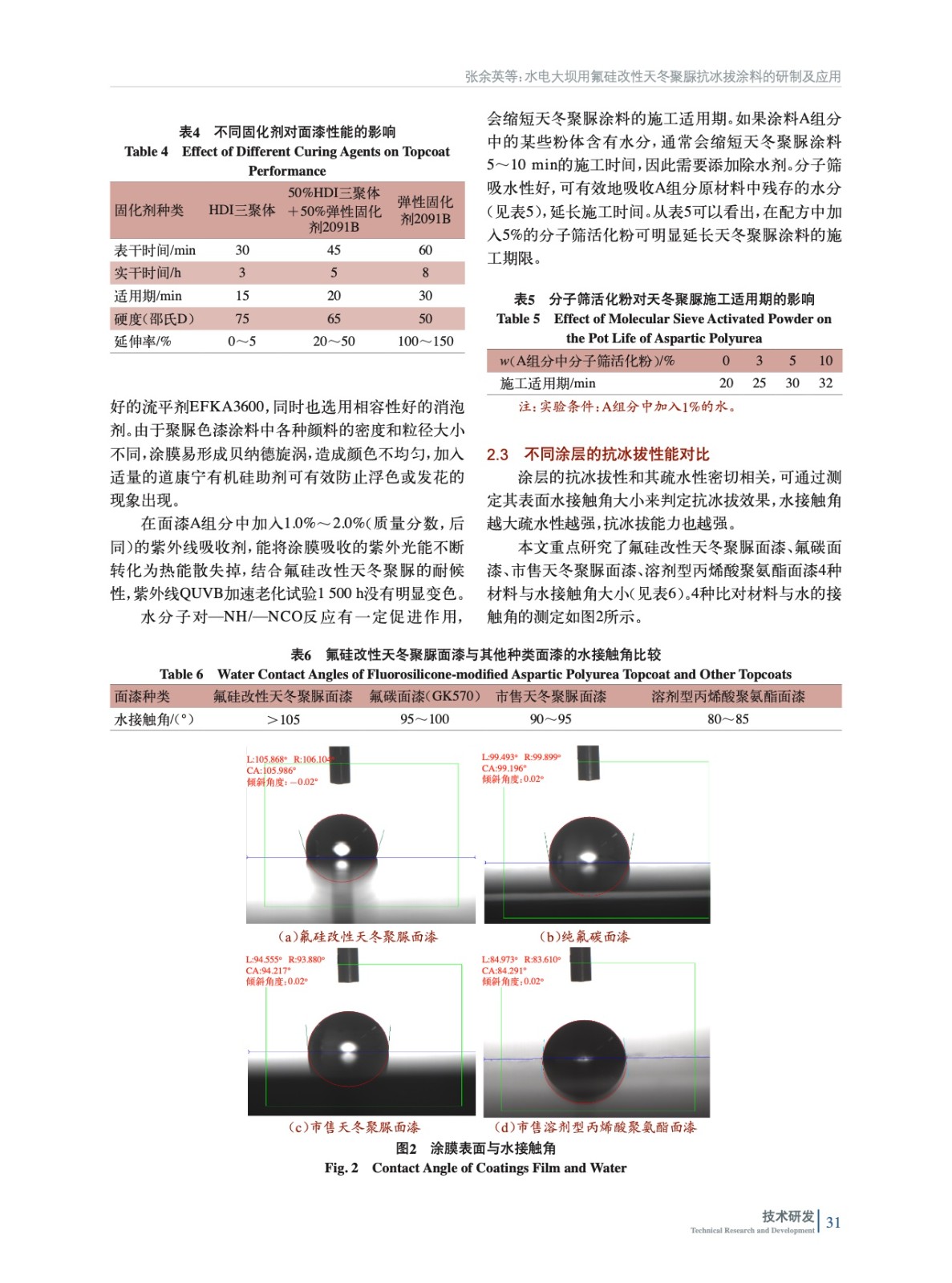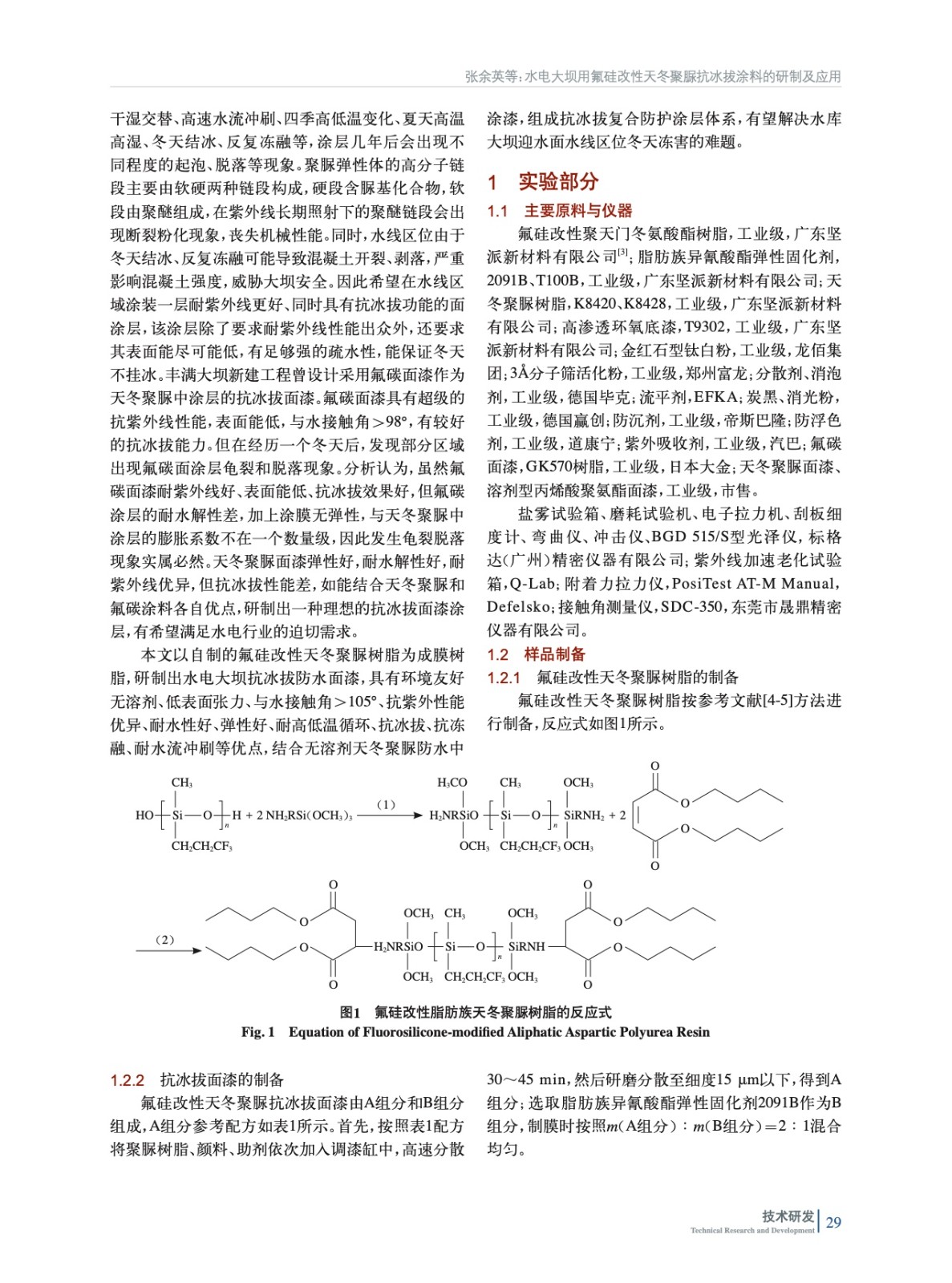 水電大壩用氟硅改性天冬聚脲抗冰拔涂料的研制及應用