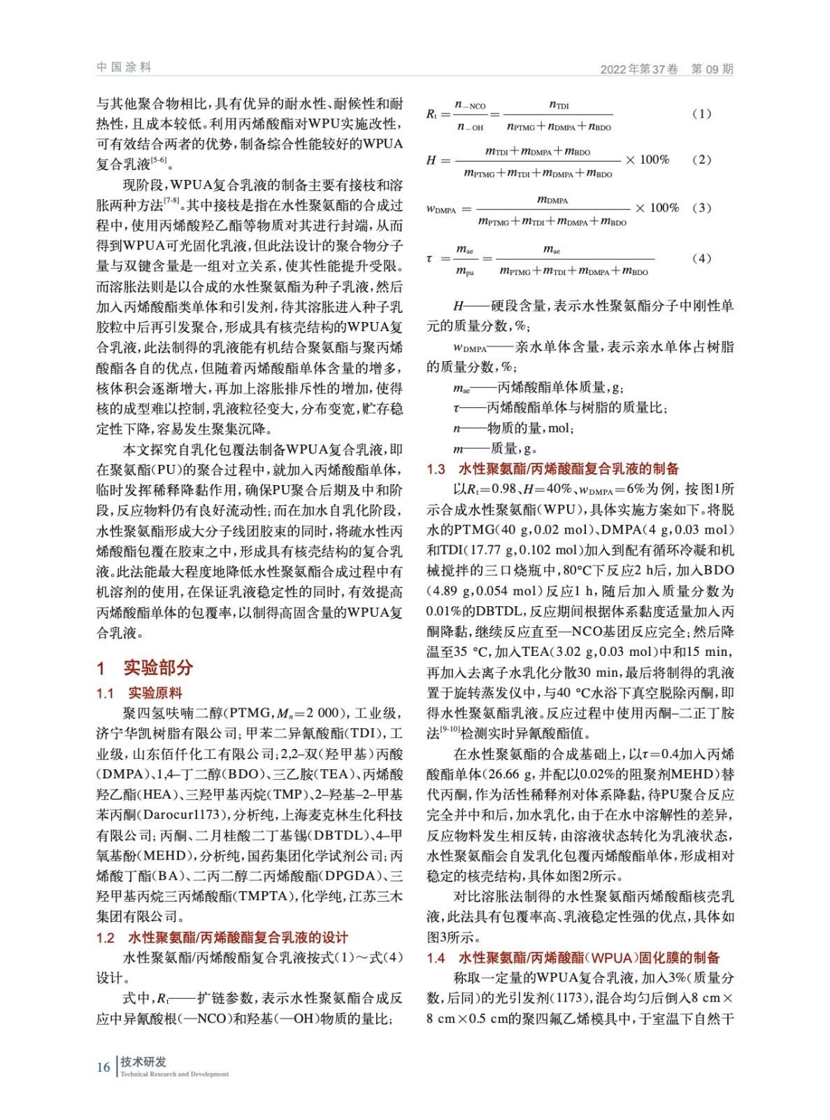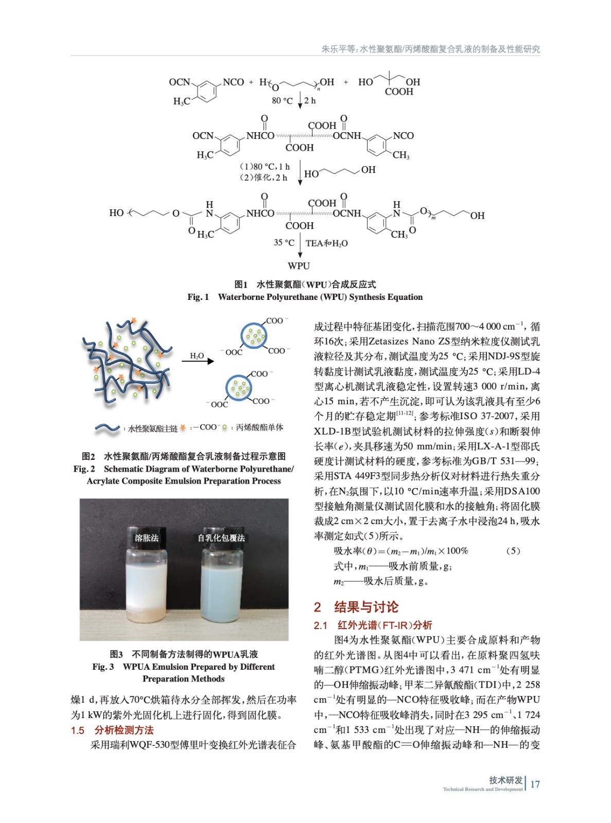 水性聚氨酯/丙烯酸酯復合乳液的制備及性能研究