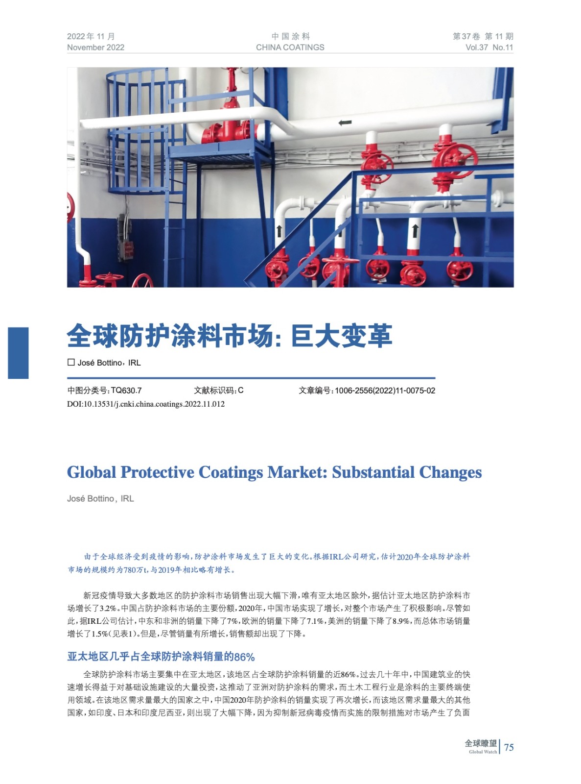 摘要:編者按:由于全球經(jīng)濟(jì)受到疫情的影響,防護(hù)涂料市場發(fā)生了巨大的變化。根據(jù)IRL公司研究,估計2020年全球防護(hù)涂料市場的規(guī)模約為780萬t,與2019年相比略有增長。