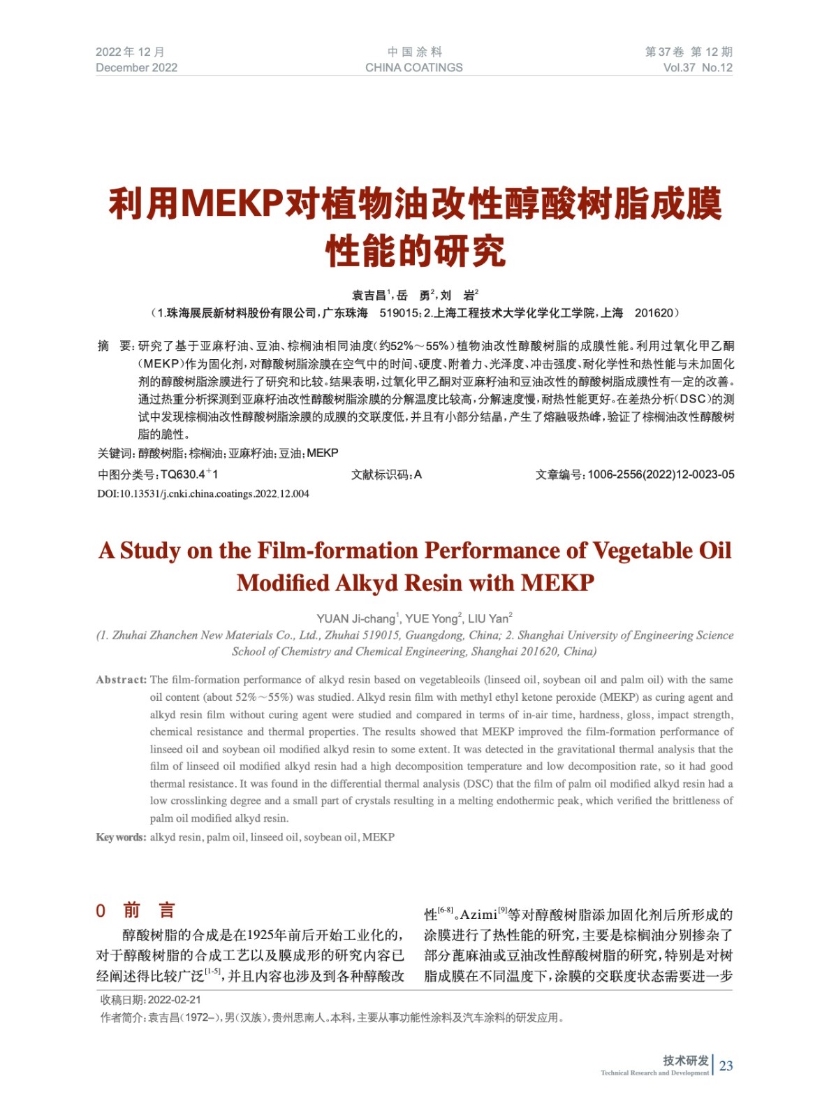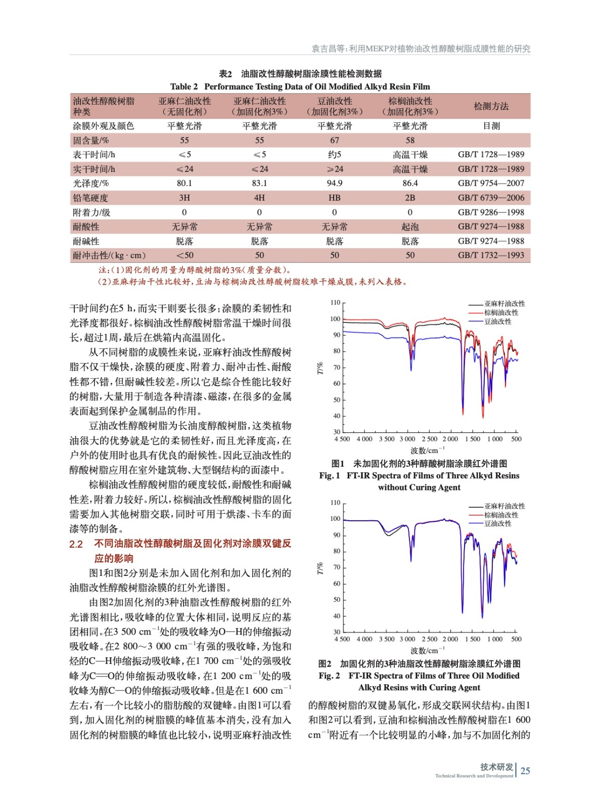 利用MEKP對植物油改性醇酸樹脂成膜性能的研究