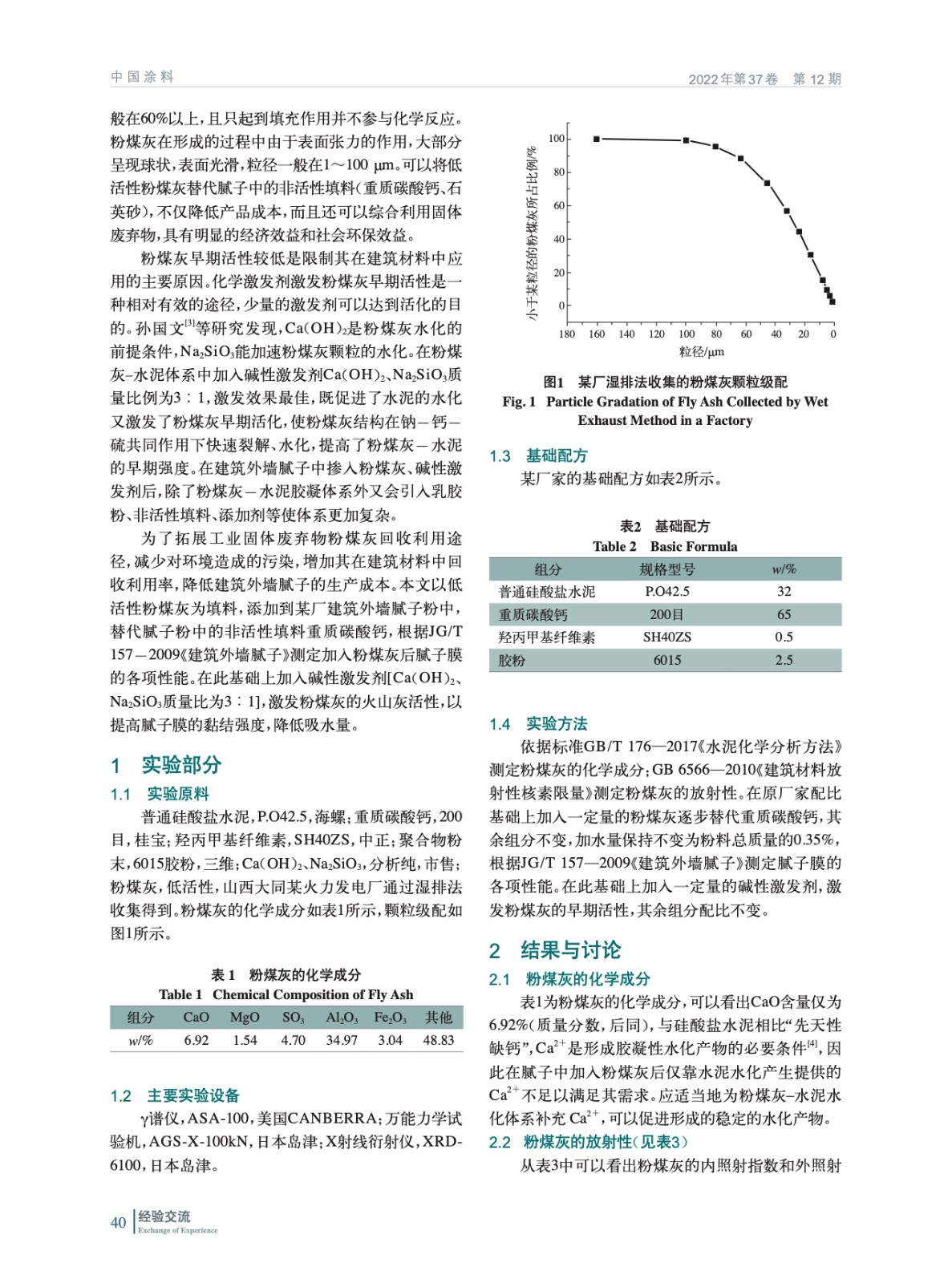 低活性粉煤灰替代建筑外墻膩子中非活性填料的可行性研究