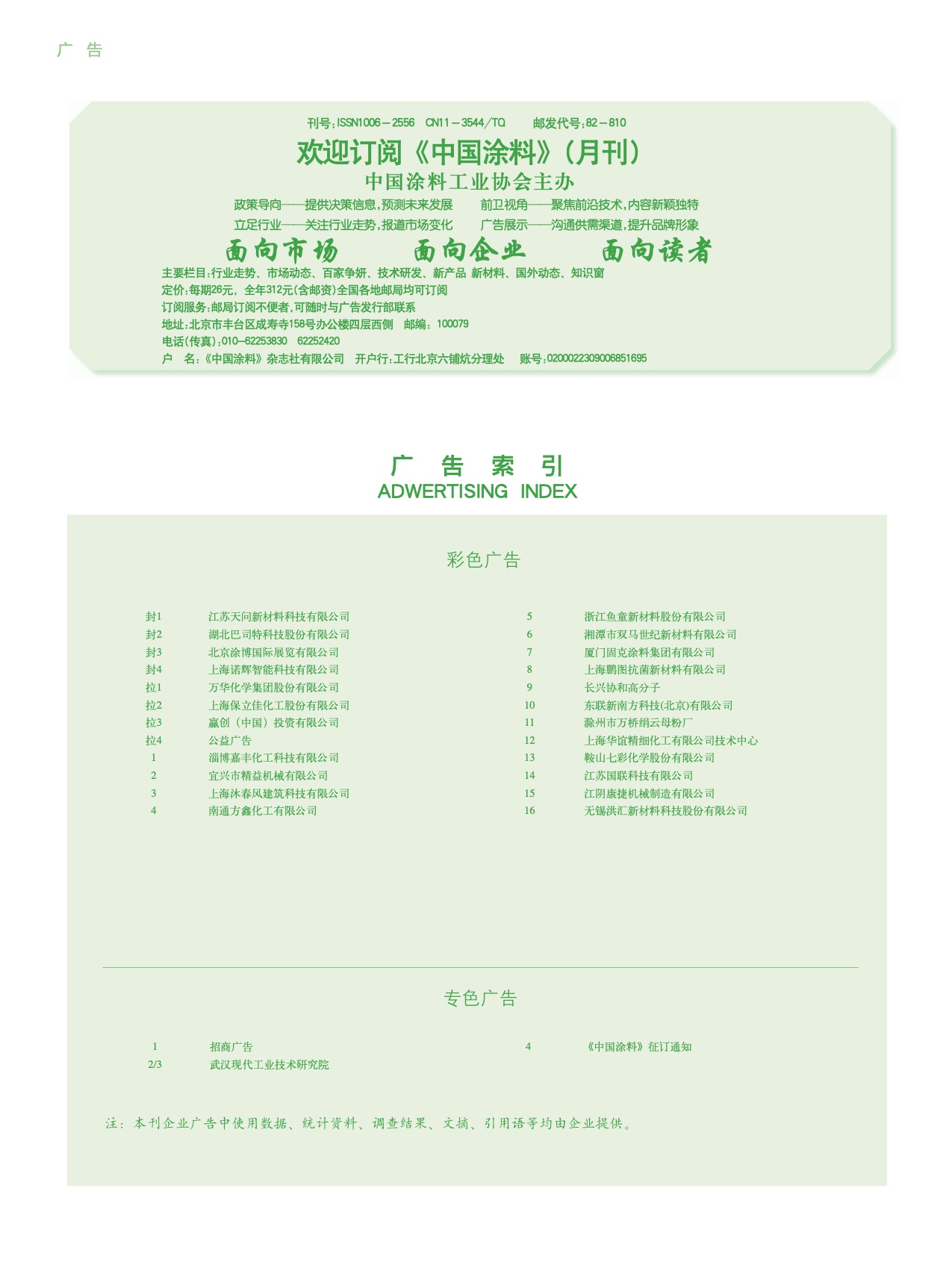 招商廣告、武漢現代、《中國涂料》征訂通知