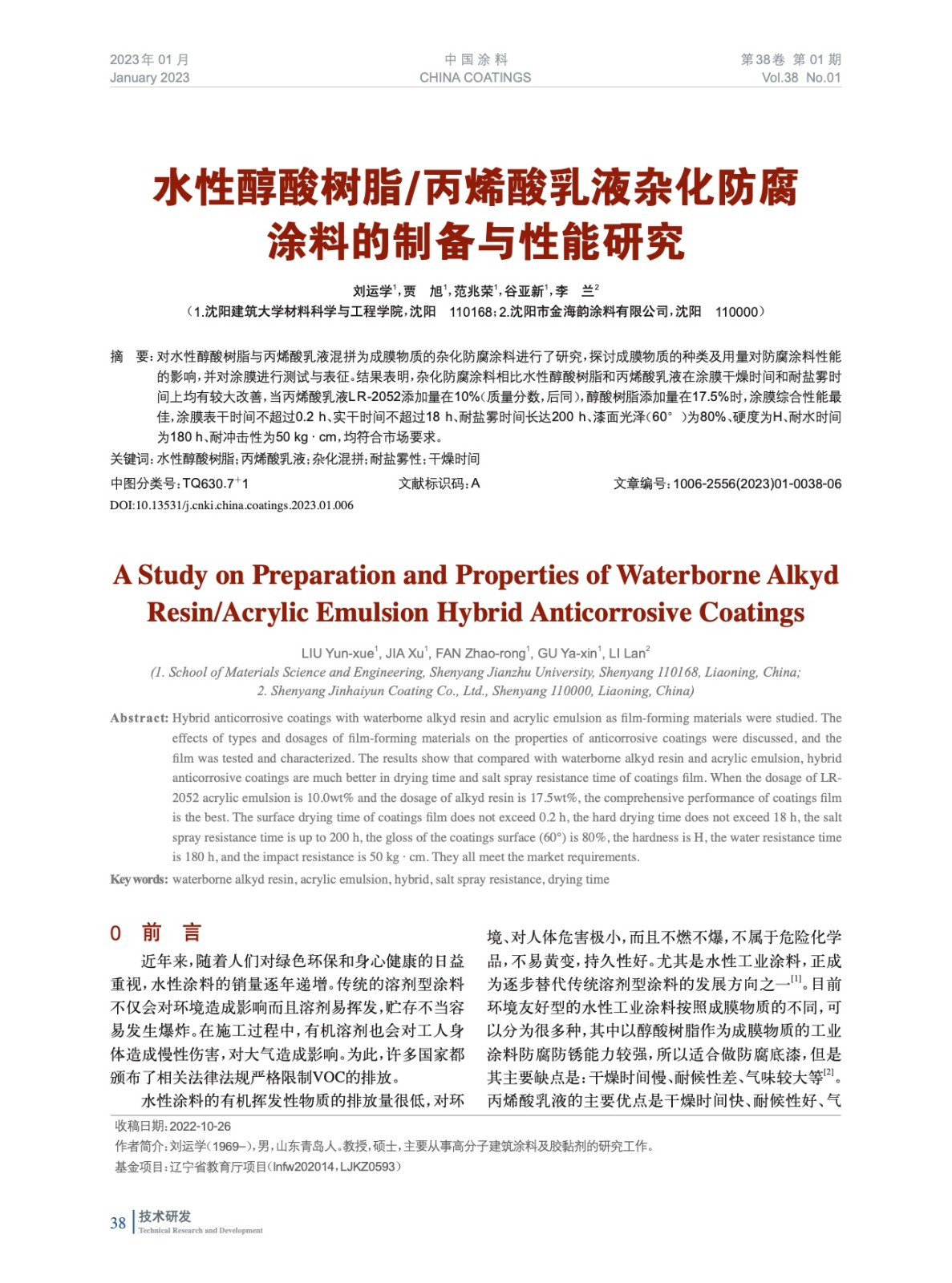 本文系作者@劉運學,賈 旭,范兆榮,谷亞新,李 蘭 授權中國涂料網發表,并經中國涂料網編輯,未經允許不得轉載,如需轉載請聯系chinacoatingnet@vip.163.com