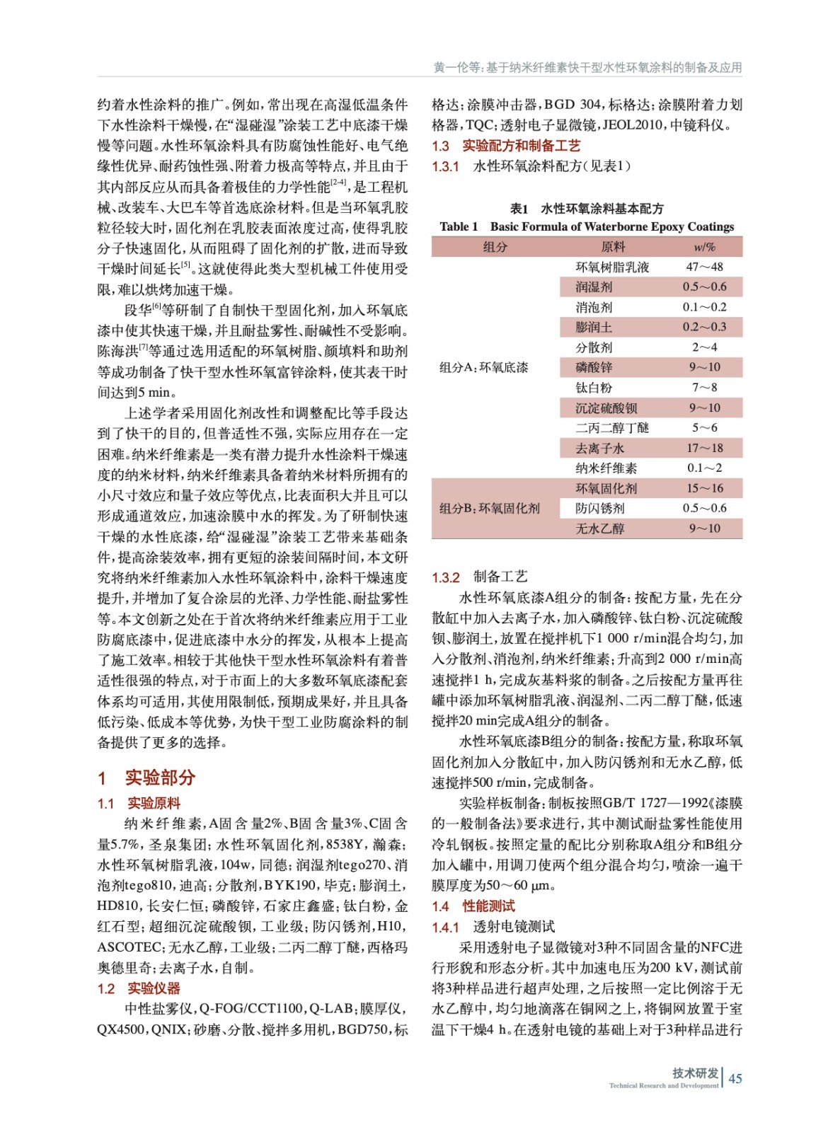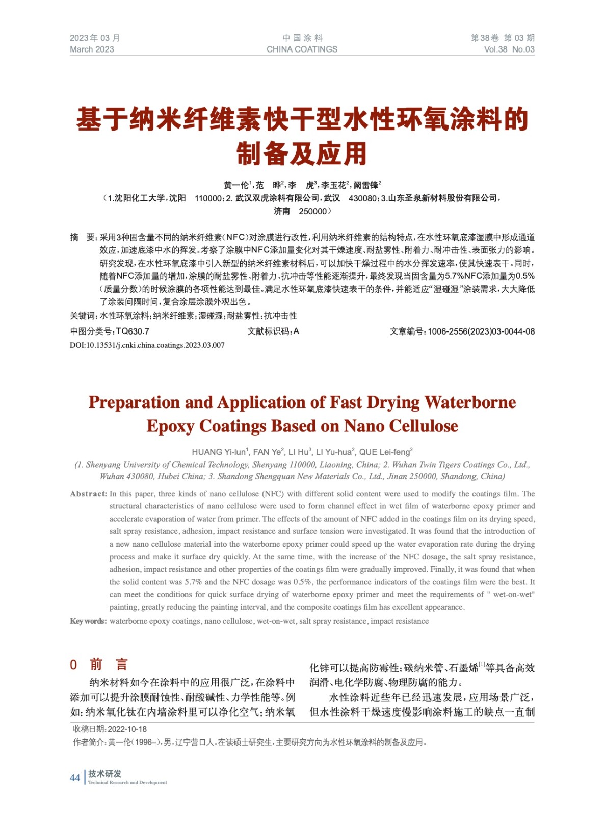 基于納米纖維素快干型水性環氧涂料的制備及應用