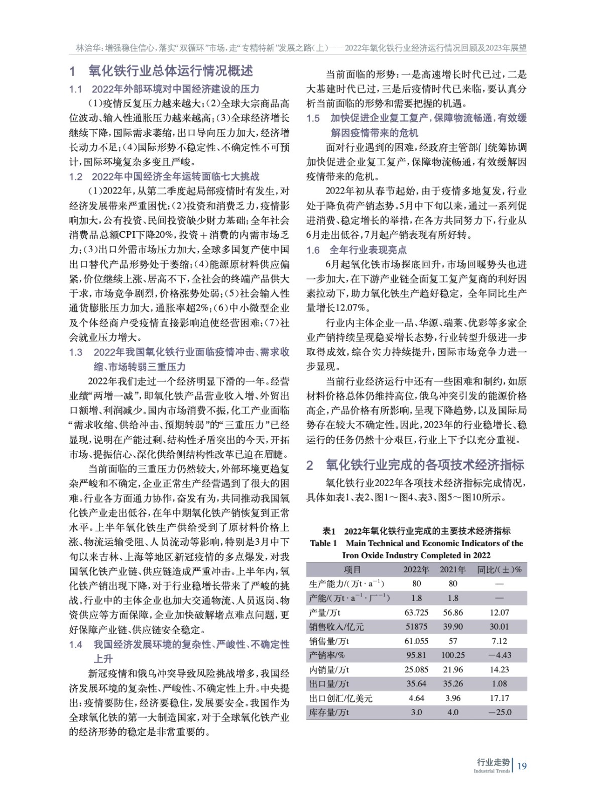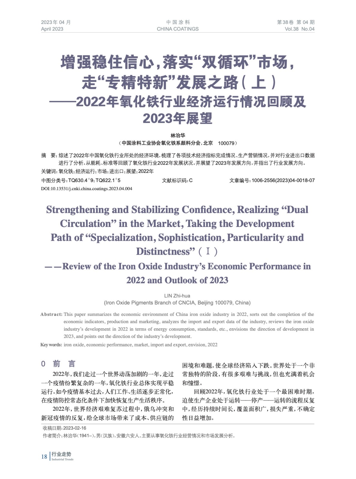增強穩住信心,落實“雙循環”市場,走“專精特新”發展之路(上)——2022年氧化鐵行業經濟運行情況回顧及2023年展望