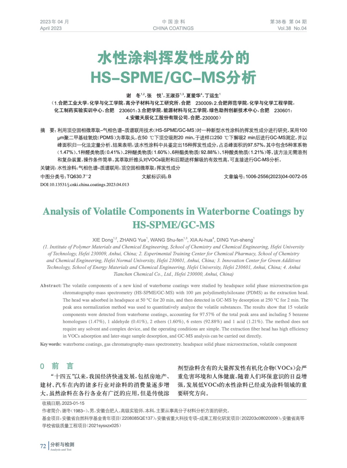 水性涂料揮發性成分的HS-SPME/GC-MS分析