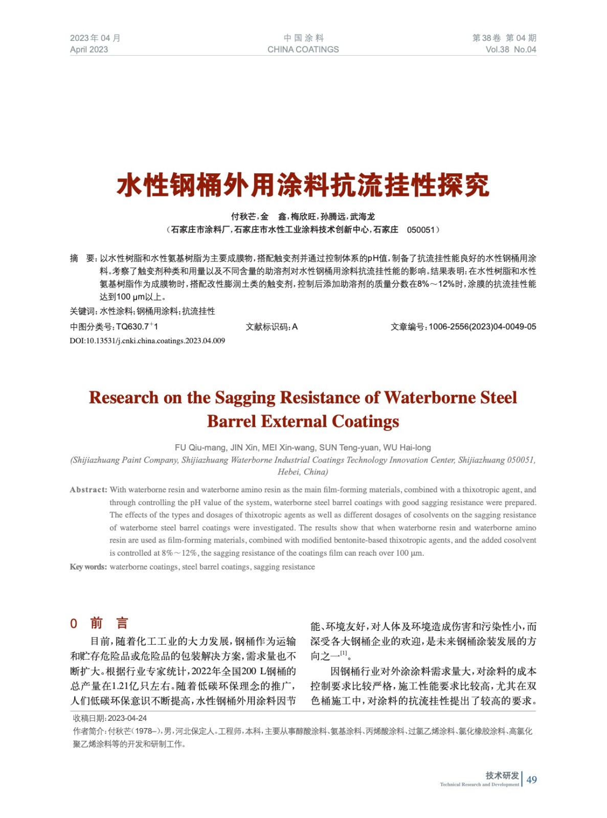 本文系作者@付秋芒,金 鑫,梅欣旺,孫騰遠,武海龍 授權(quán)中國涂料網(wǎng)發(fā)表,并經(jīng)中國涂料網(wǎng)編輯,未經(jīng)允許不得轉(zhuǎn)載,如需轉(zhuǎn)載請聯(lián)系chinacoatingnet@vip.163.com