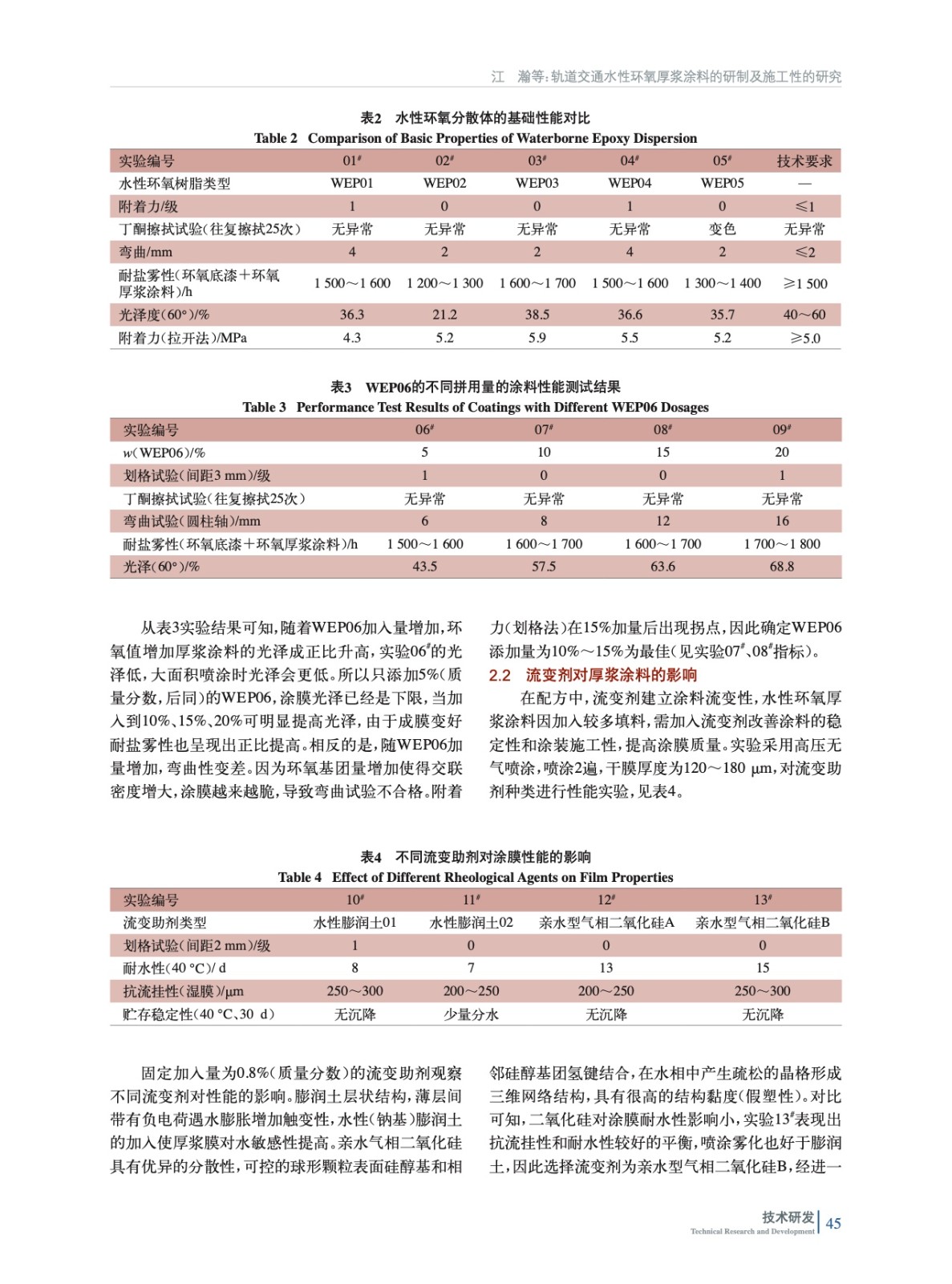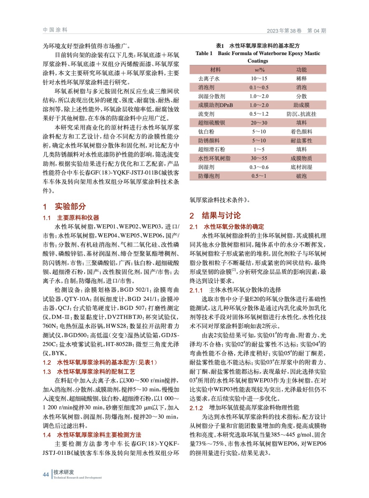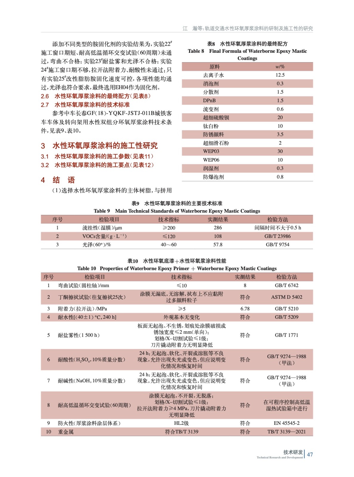 軌道交通水性環(huán)氧厚漿涂料的研制及施工性的研究