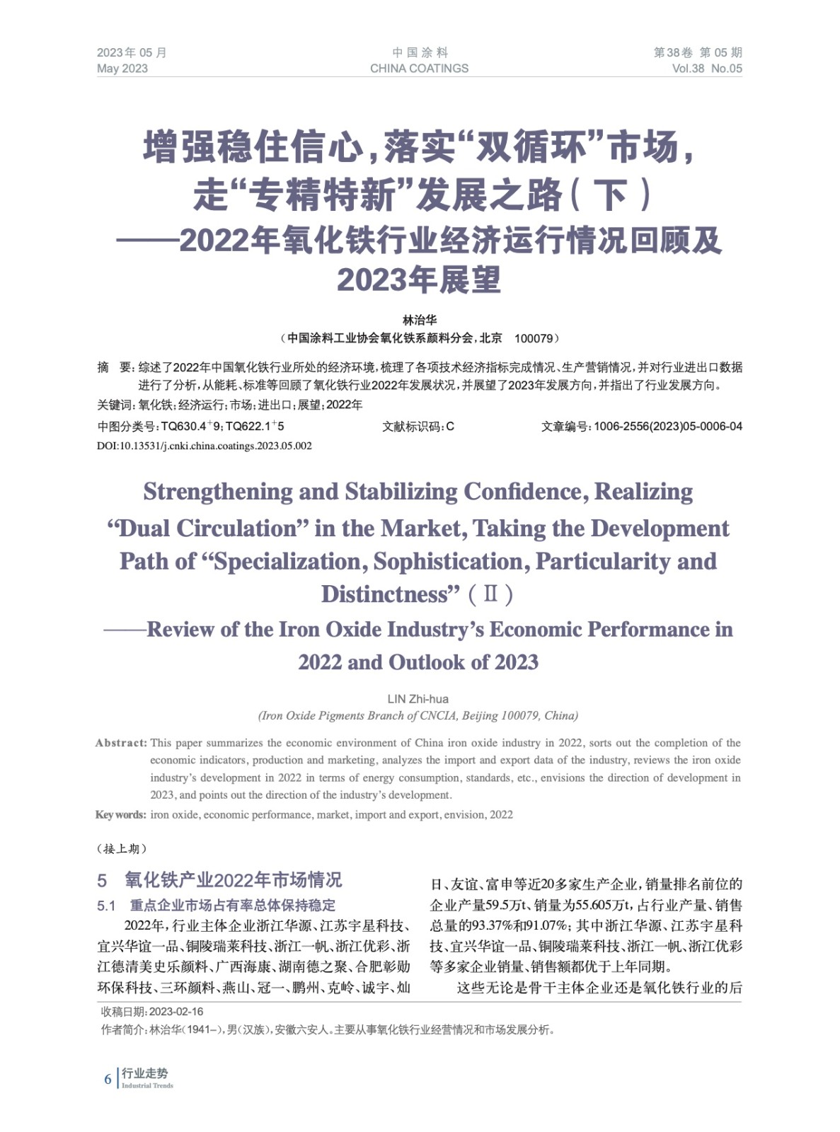 增強穩住信心,落實“雙循環”市場,走“專精特新”發展之路(下)——2022年氧化鐵行業經濟運行情況回顧及2023年展望