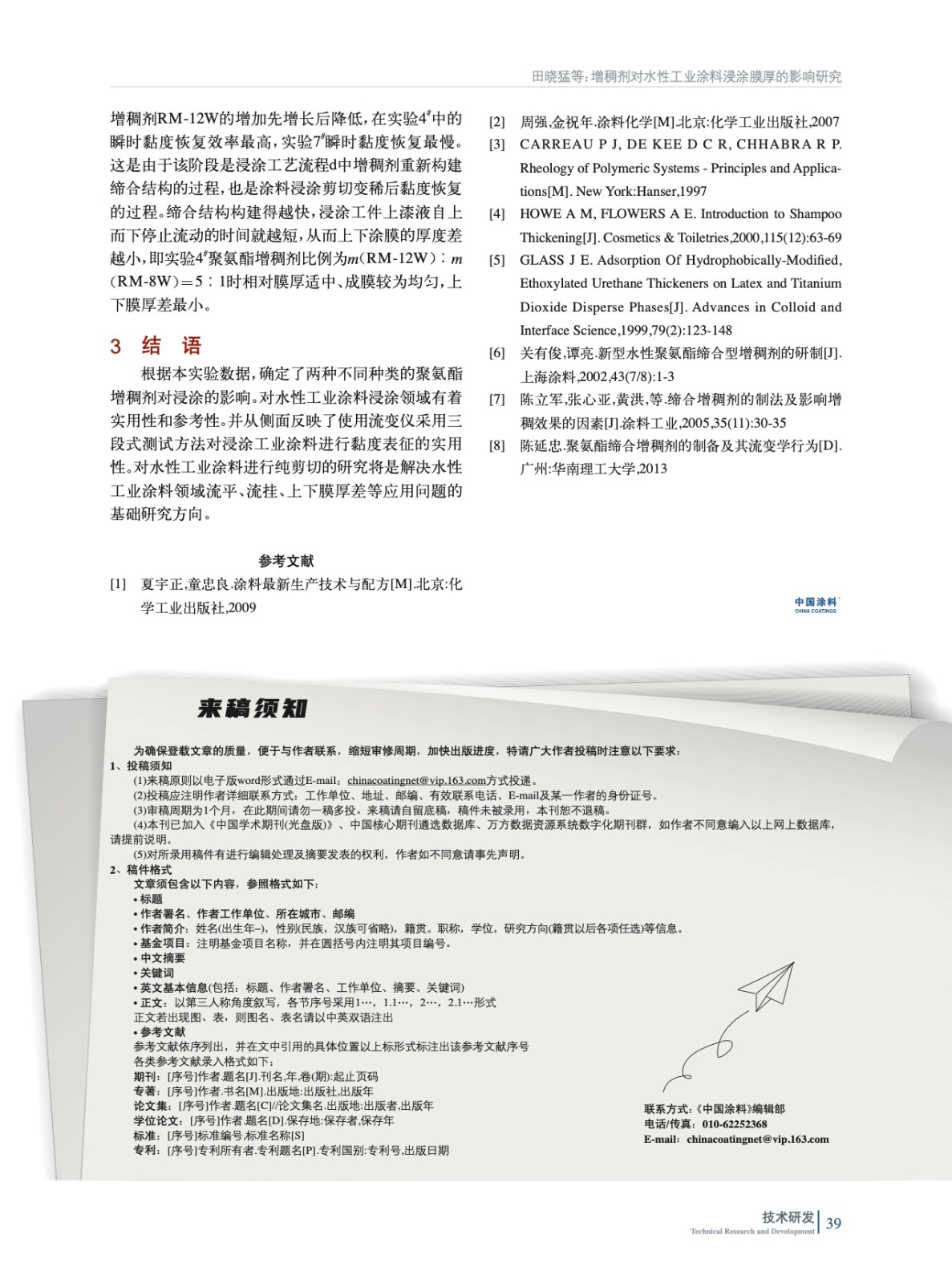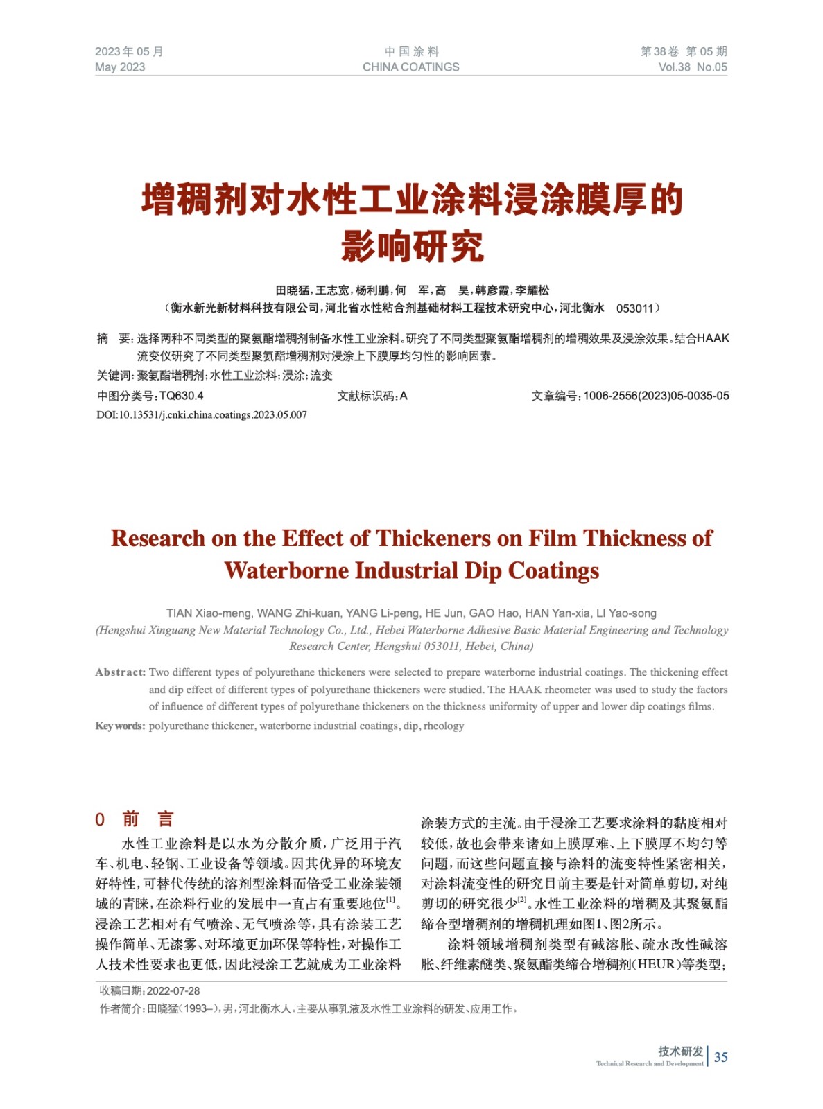 增稠劑對水性工業(yè)涂料浸涂膜厚的影響研究