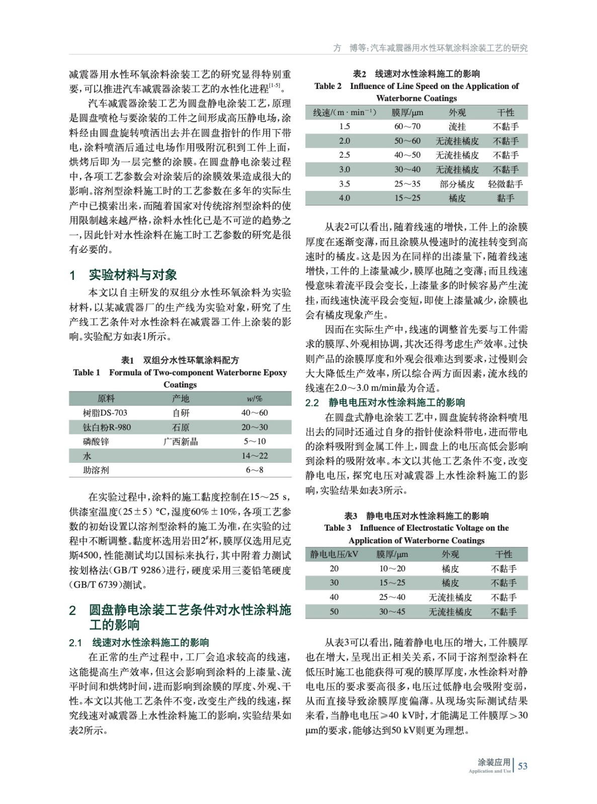 汽車減震器用水性環氧涂料涂裝工藝的研究