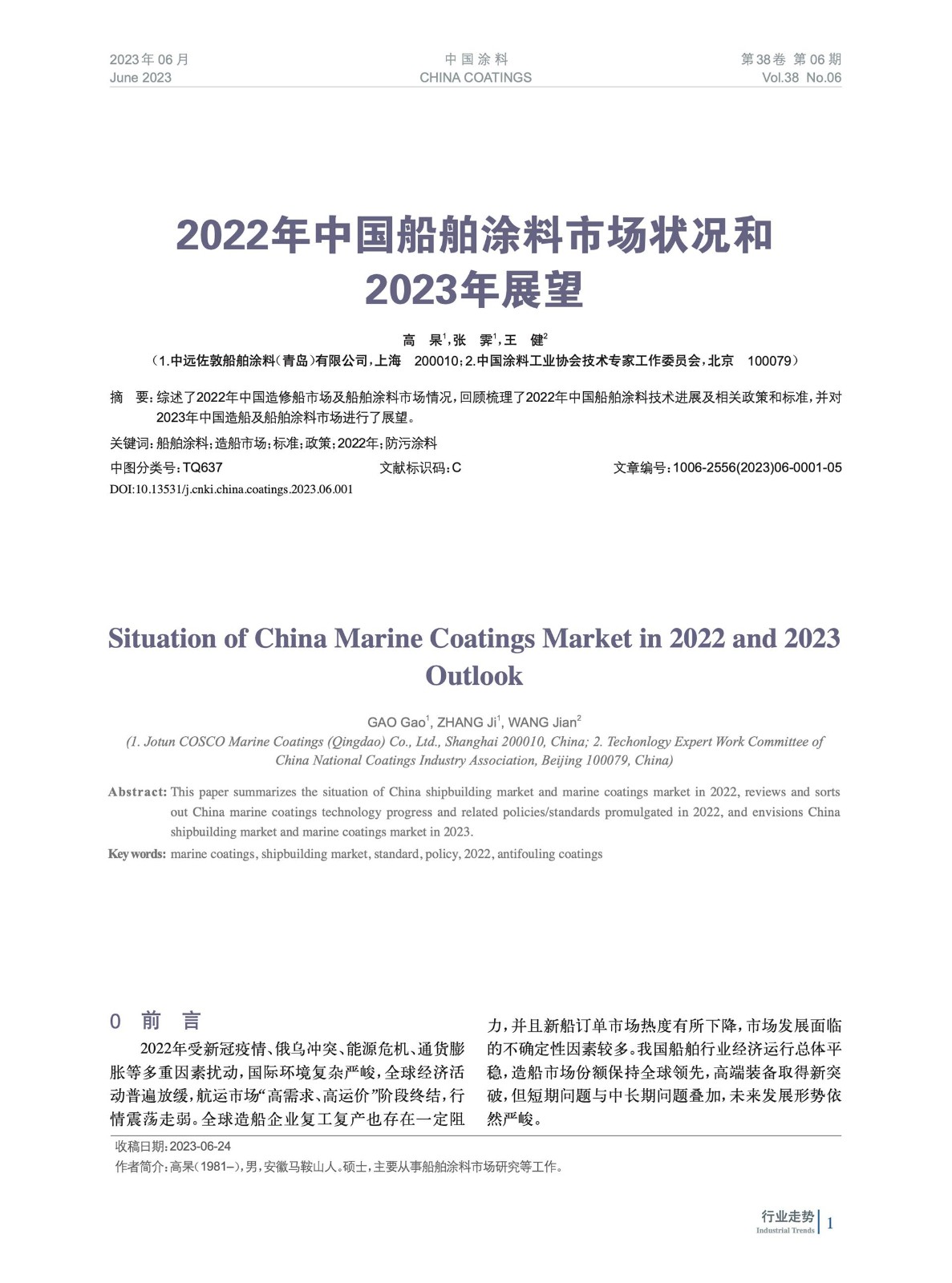 本文系作者@高 杲,張 霽,王 健 授權中國涂料網發表,并經中國涂料網編輯,未經允許不得轉載,如需轉載請聯系chinacoatingnet@vip.163.com