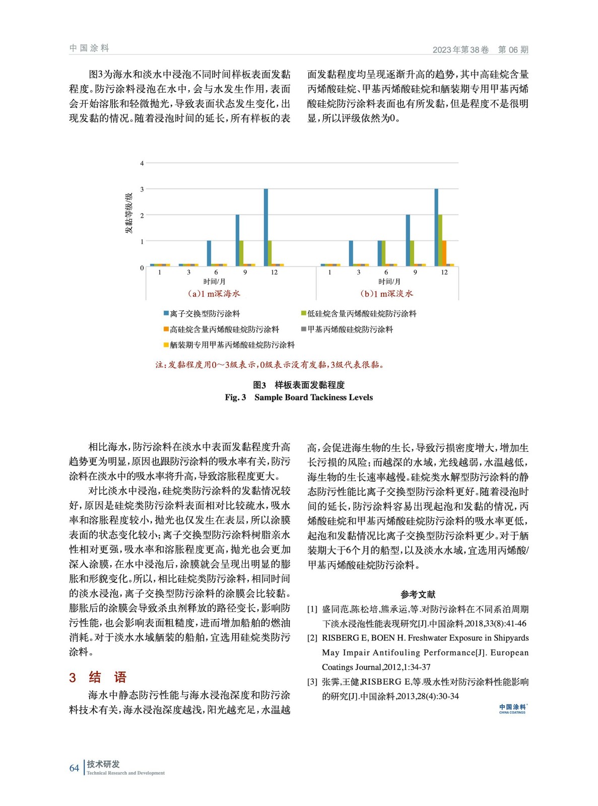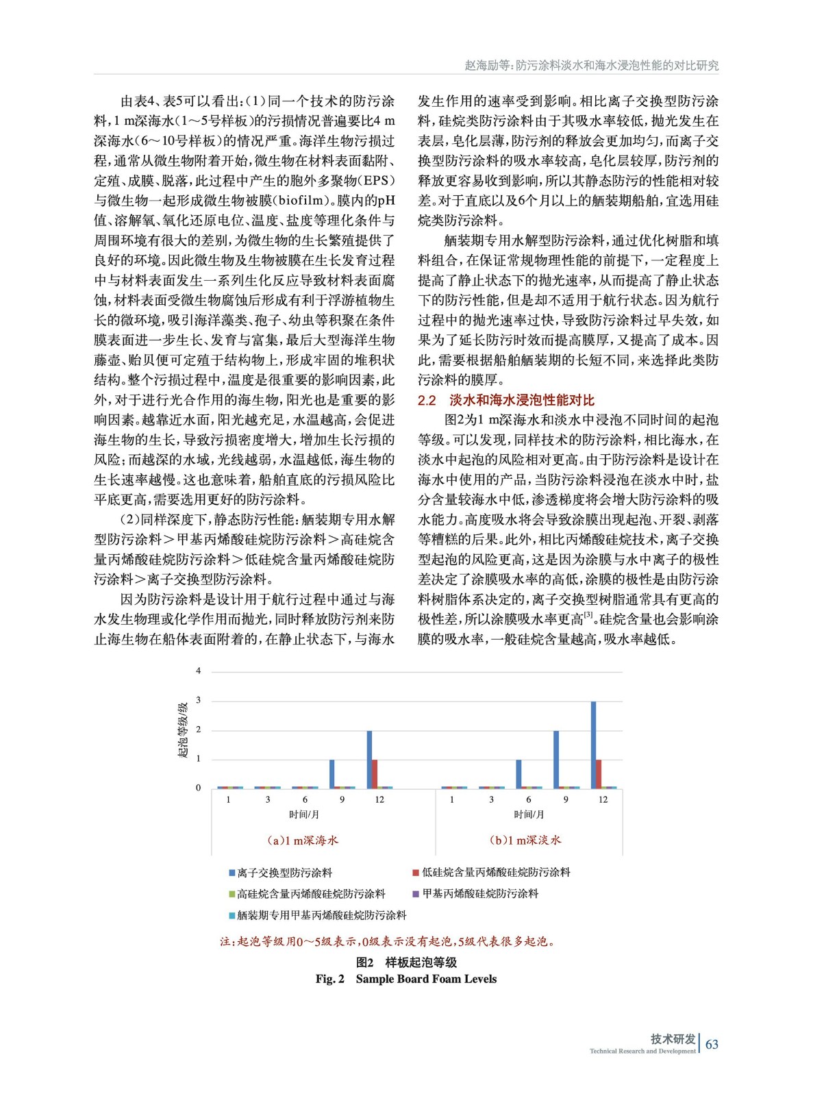 摘要:選取市場上常見的不同技術類型的防污涂料,研究不同浸泡周期下,防污涂料在淡水和海水中以及不同海水深度下的性能表現。結果表明,海水深度越淺,生長污損的風險越高,硅烷類水解型防污涂料的靜態防污性能更好。防污涂料在淡水中更容易出現起泡和發黏的情況,丙烯酸硅烷和甲基丙烯酸硅烷防污涂料的吸水率更低,起泡和發黏情況更少。該研究結果為碼頭舾裝階段的防污涂料選擇和造船工藝改進提供了參考。