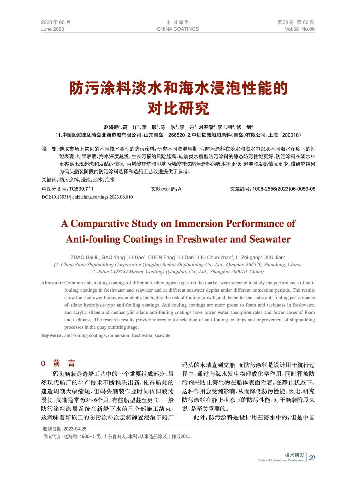 本文系作者@趙海勵,高 洋,李 灝,陳 昉,李 丹,劉春潮,李志剛,修 劍 授權中國涂料網發表,并經中國涂料網編輯,未經允許不得轉載,如需轉載請聯系chinacoatingnet@vip.163.com