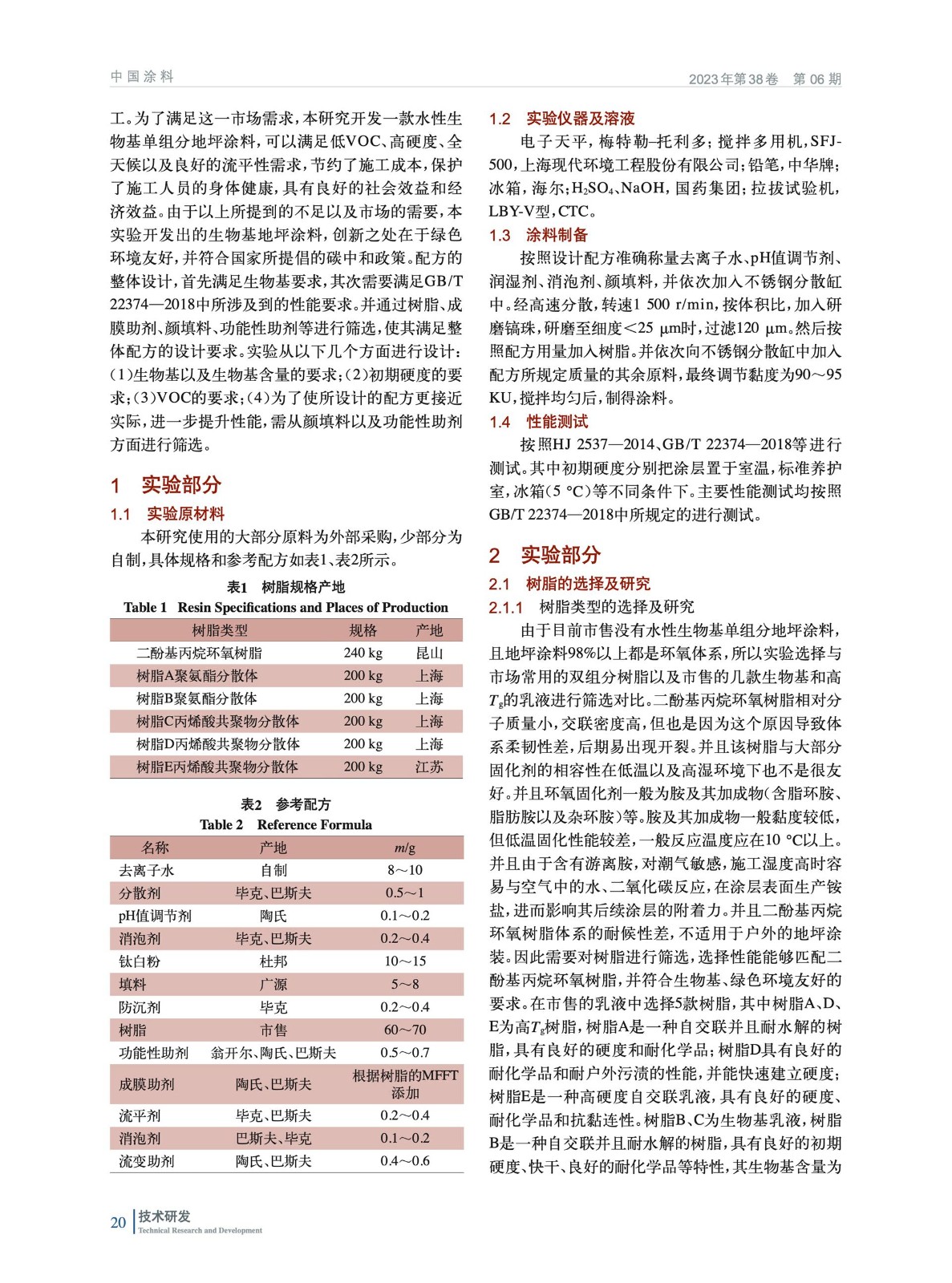 水性單組分生物基地坪涂料的配方設(shè)計(jì)及性能研究