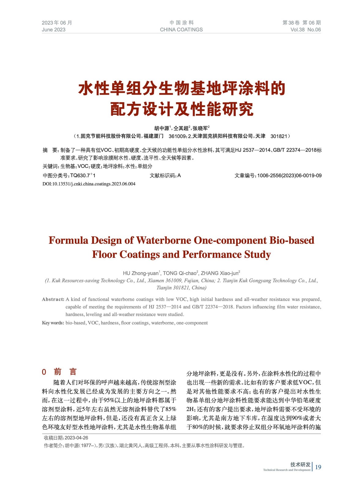 本文系作者@胡中源,仝其超,張曉軍 授權(quán)中國涂料網(wǎng)發(fā)表,并經(jīng)中國涂料網(wǎng)編輯,未經(jīng)允許不得轉(zhuǎn)載,如需轉(zhuǎn)載請(qǐng)聯(lián)系chinacoatingnet@vip.163.com