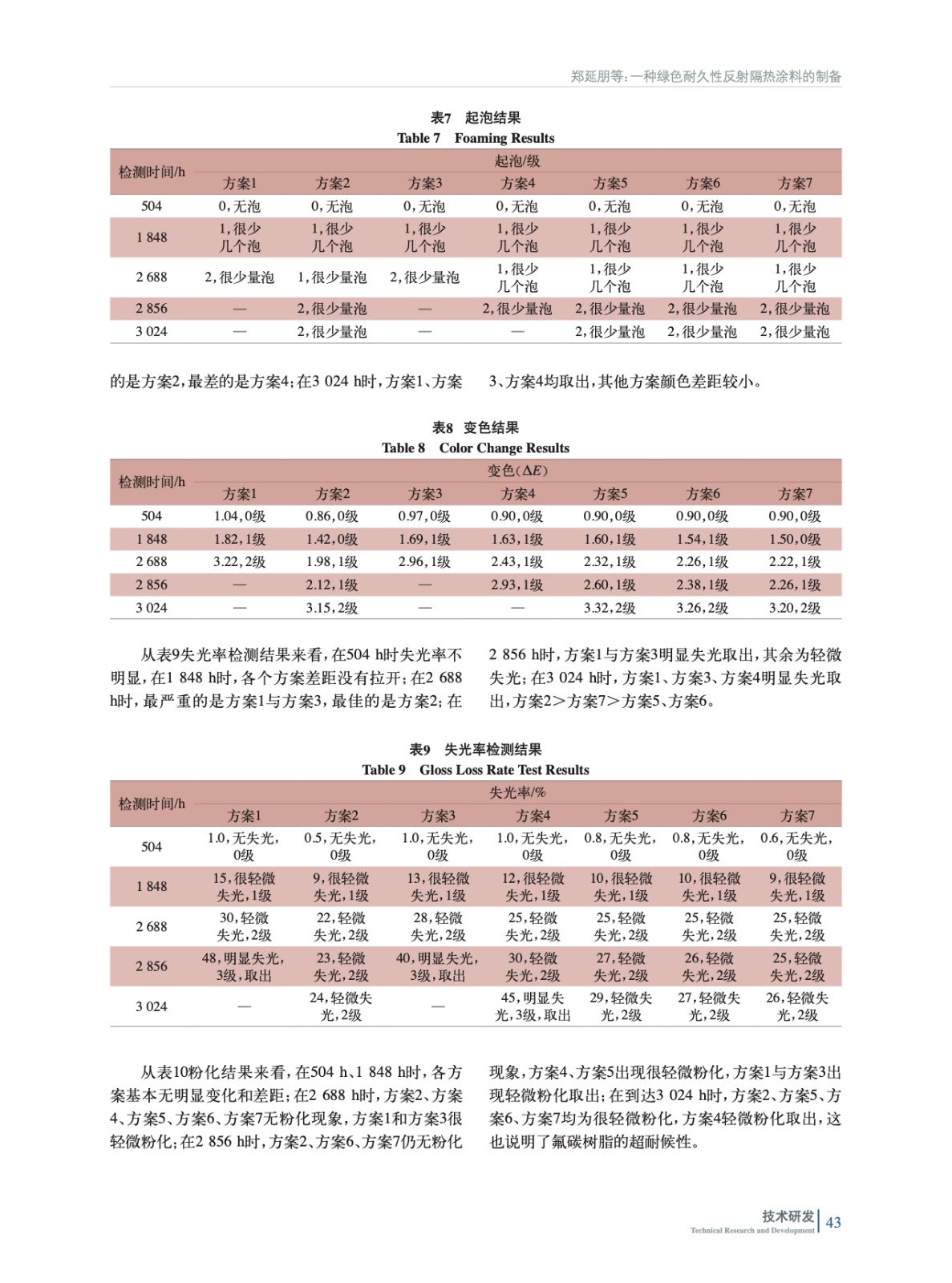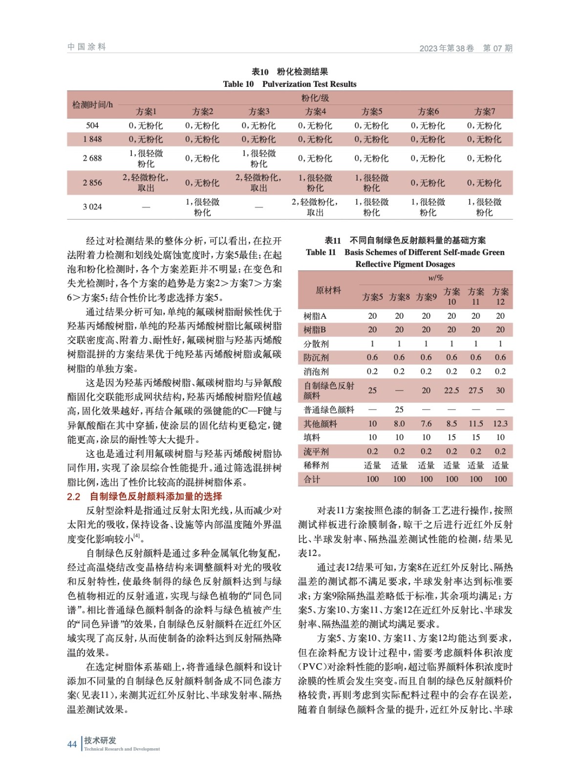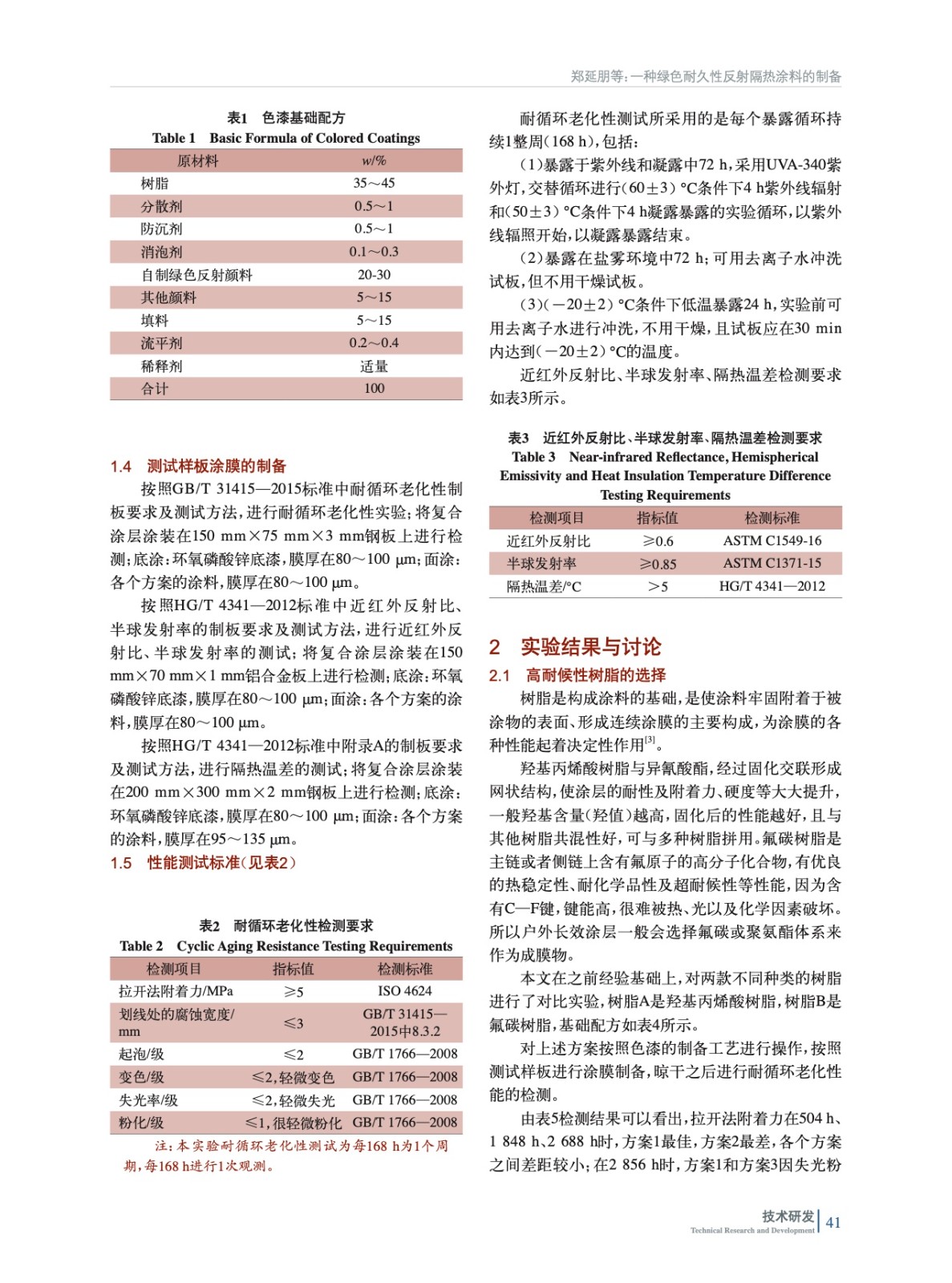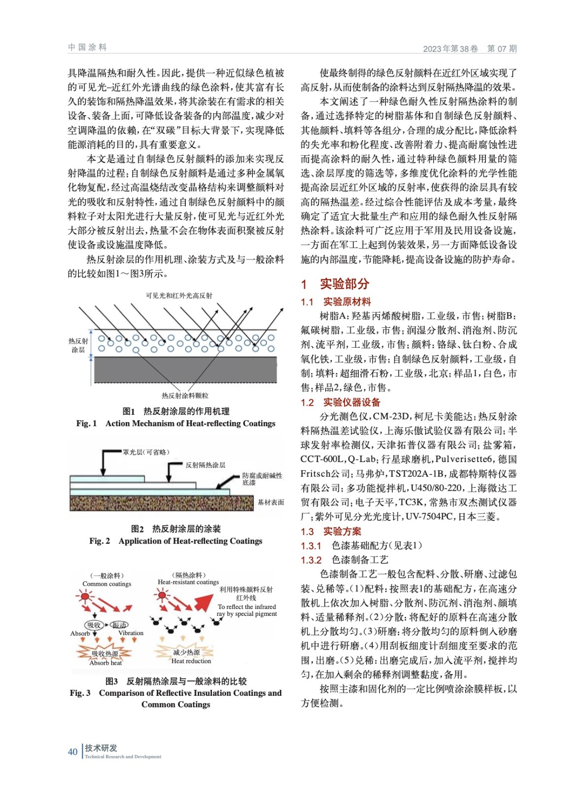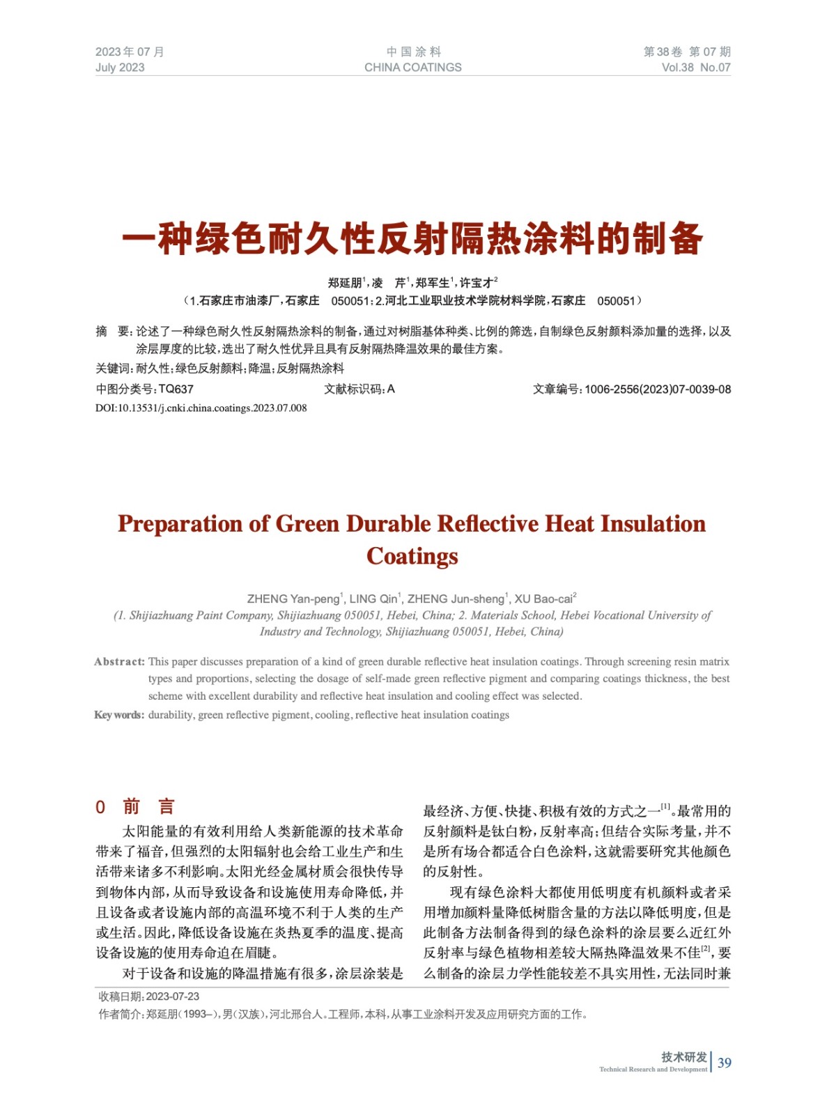 論述了一種綠色耐久性反射隔熱涂料的制備,通過對樹脂基體種類、比例的篩選,自制綠色反射顏料添加量的選擇,以及涂層厚度的比較,選出了耐久性優異且具有反射隔熱降溫效果的最佳方案。