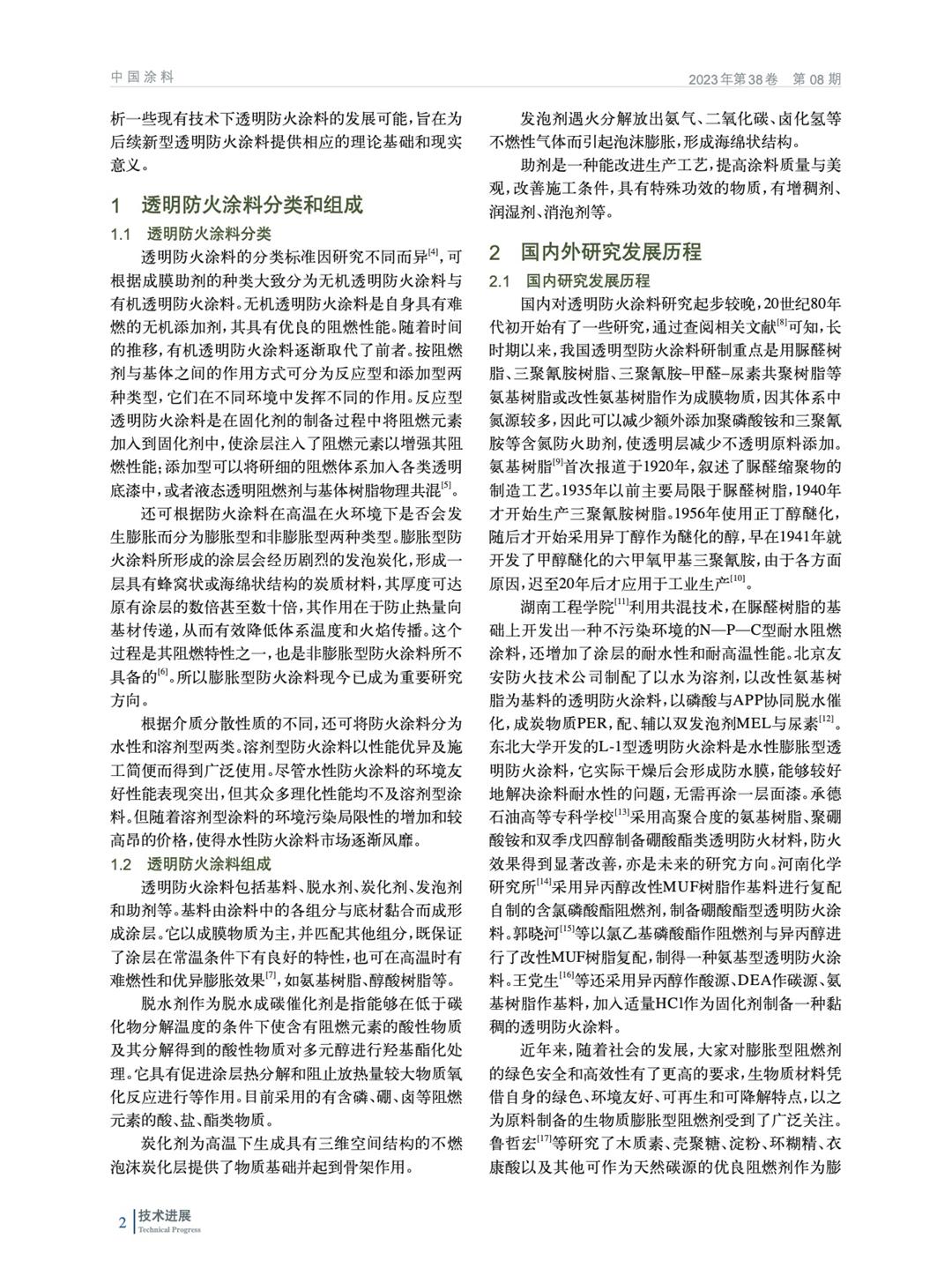 摘要:簡要介紹了透明防火涂料的分類和組成,然后闡述國內(nèi)外透明防火涂料的發(fā)展現(xiàn)狀并進(jìn)行對比歸納,進(jìn)一步介紹膨脹型阻燃劑的發(fā)展概況及未來展望。