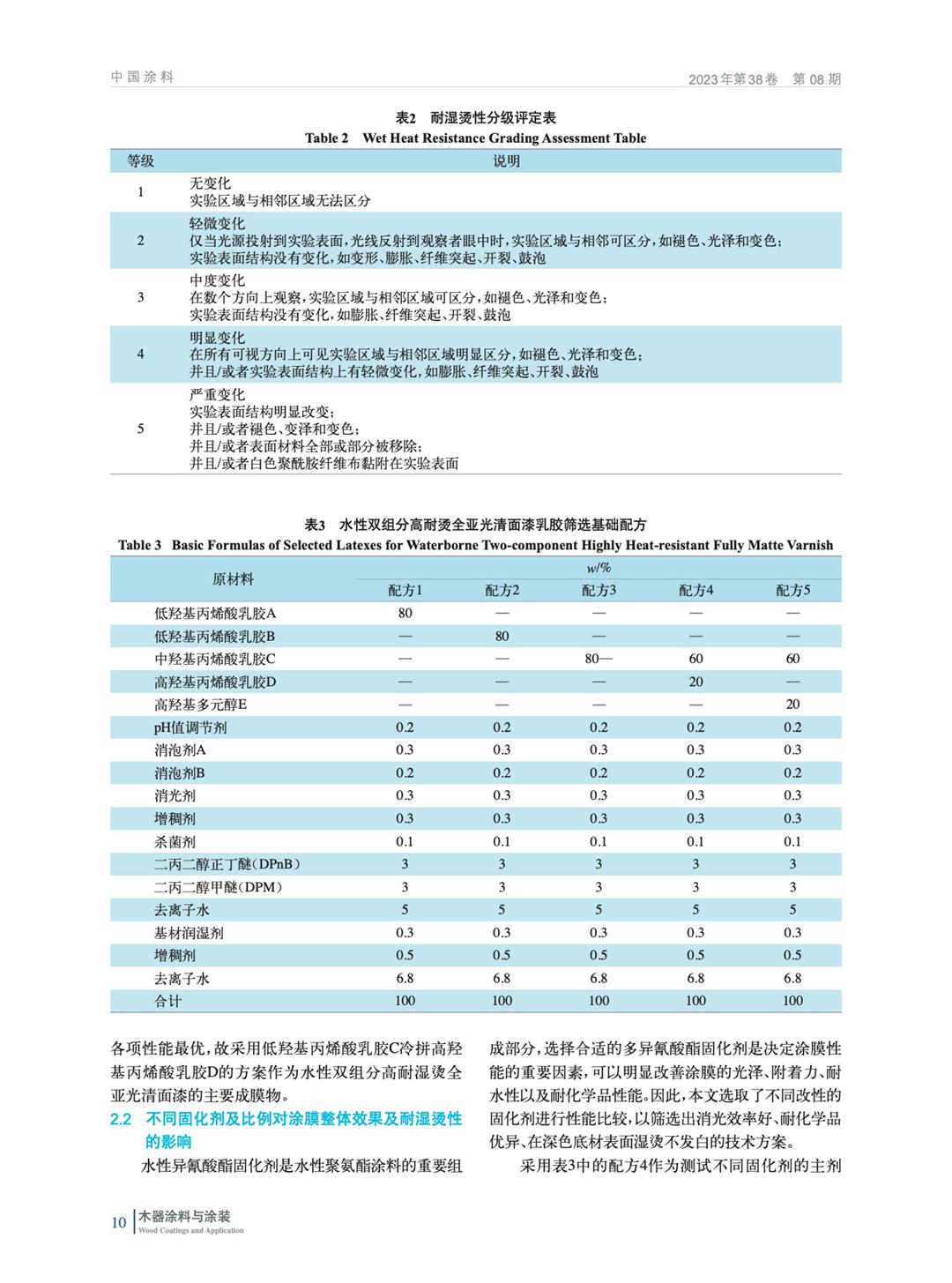水性雙組分高耐燙全亞光清面漆的制備與配方研究