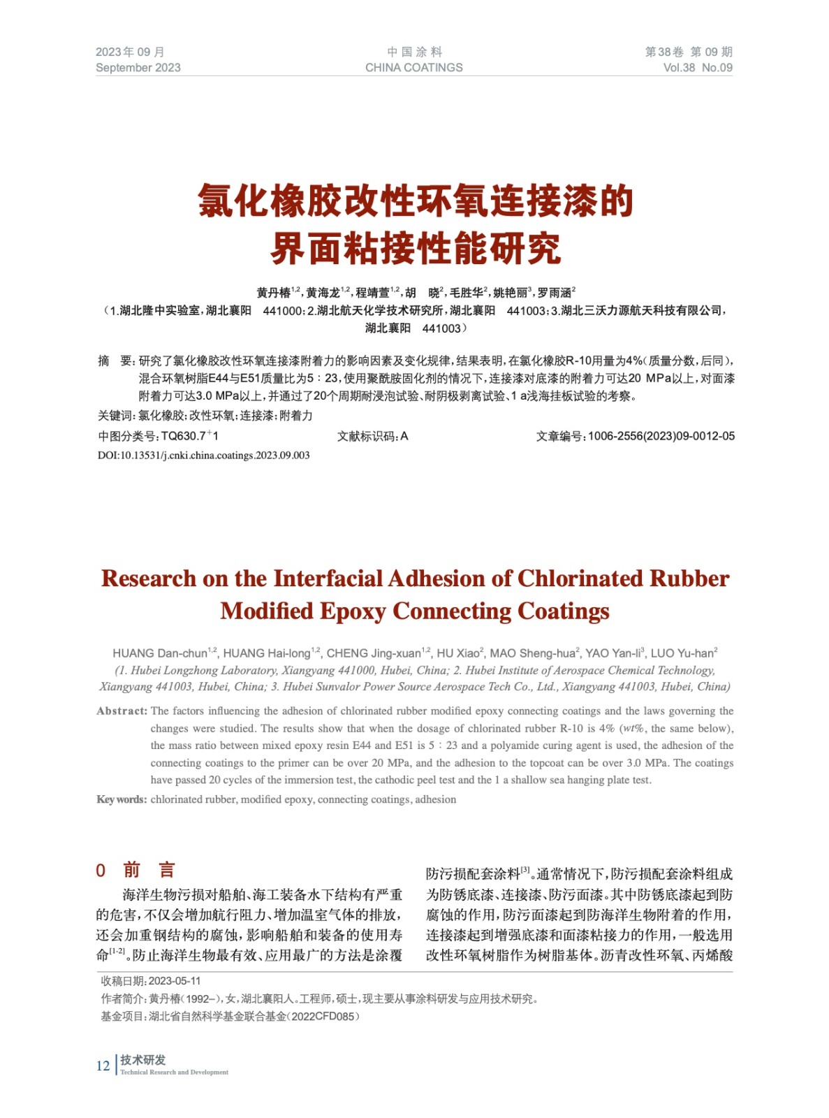 本文系作者@黃丹椿,黃海龍,程靖萱,胡 曉,毛勝華,姚艷麗,羅雨涵 授權中國涂料網發表,并經中國涂料網編輯,未經允許不得轉載,如需轉載請聯系chinacoatingnet@vip.163.com
