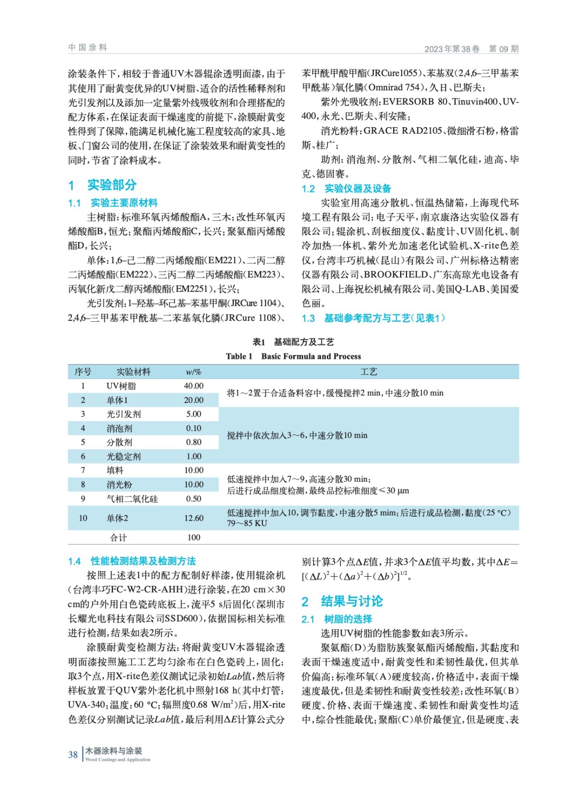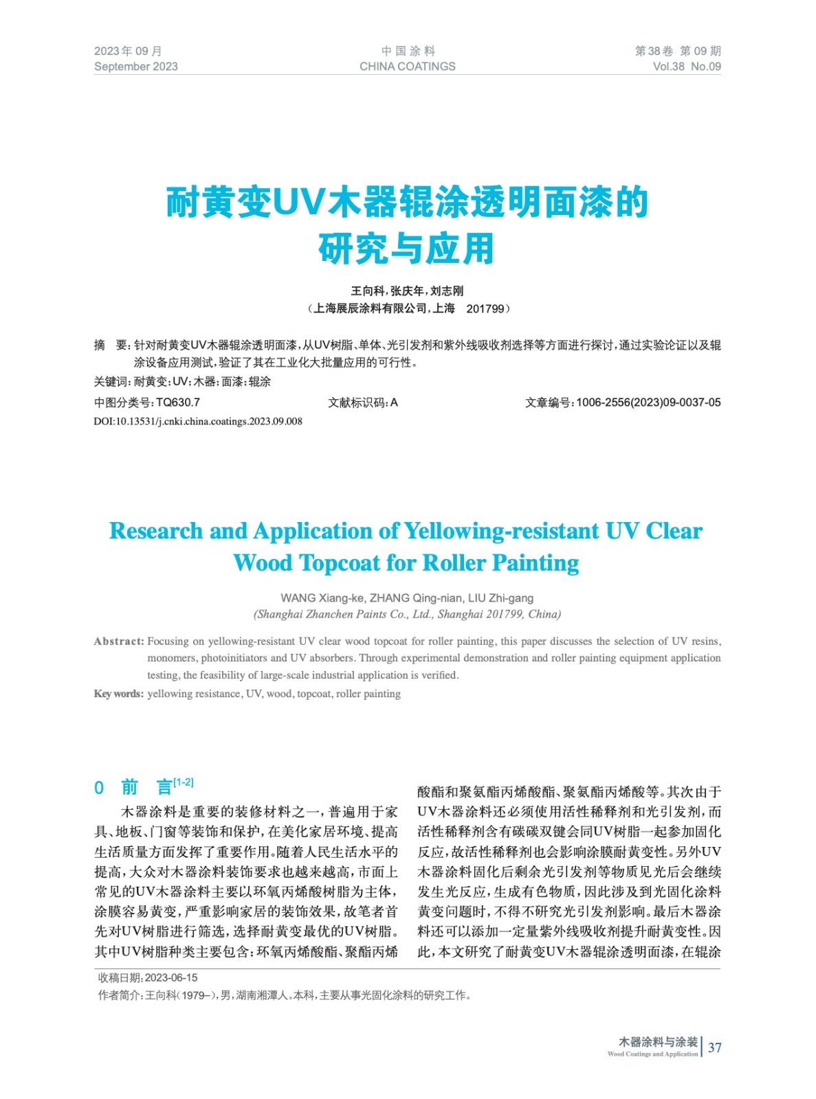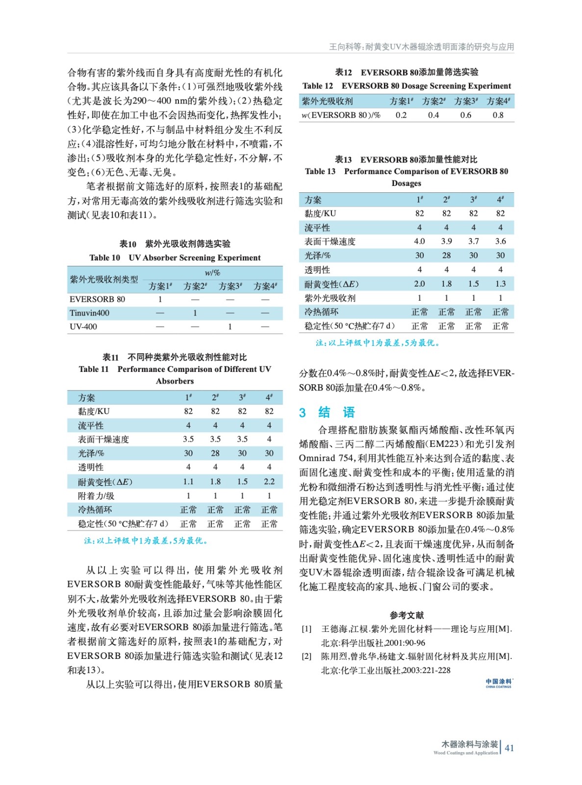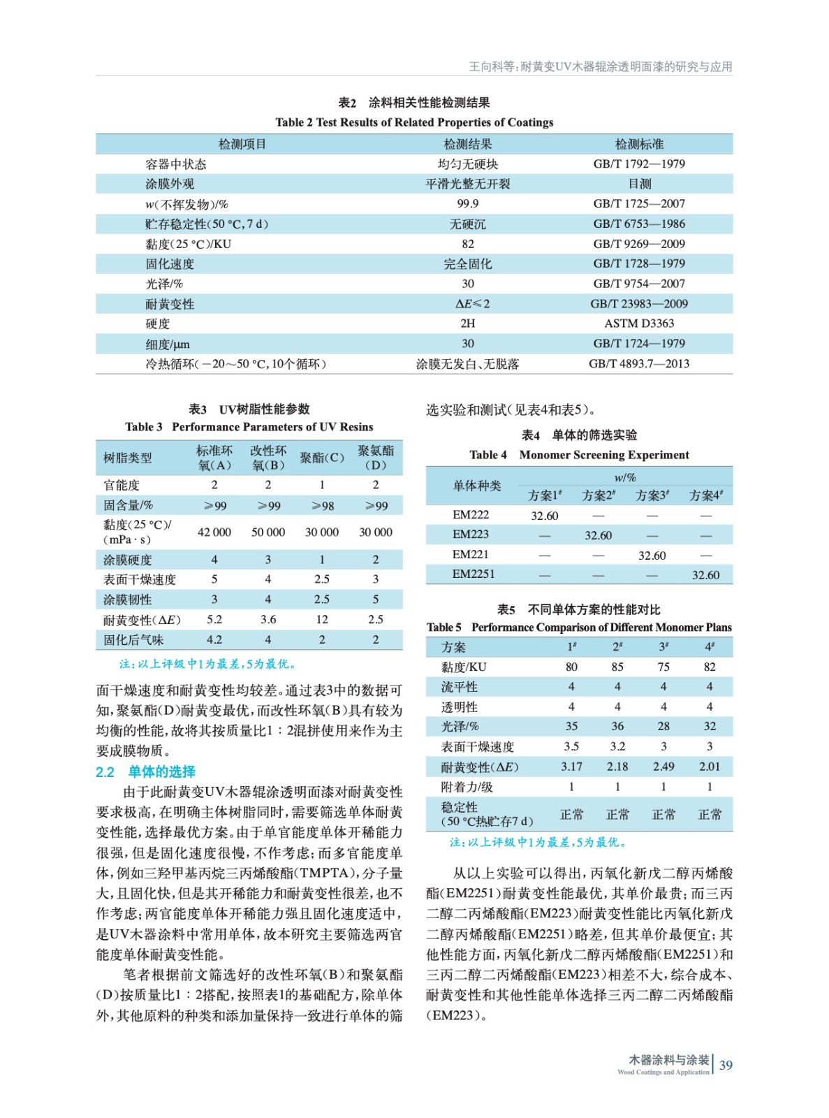耐黃變UV木器輥涂透明面漆的研究與應(yīng)用