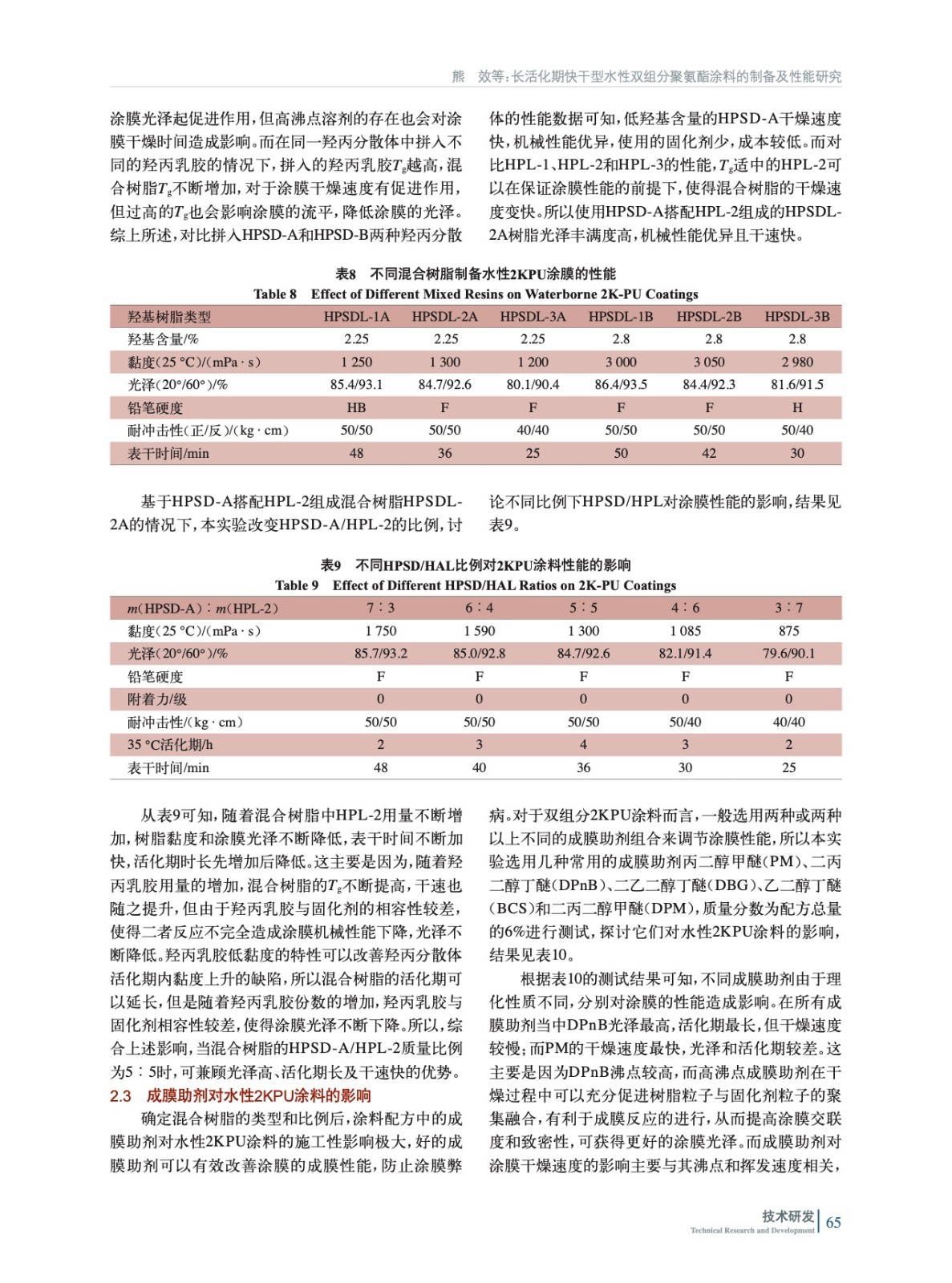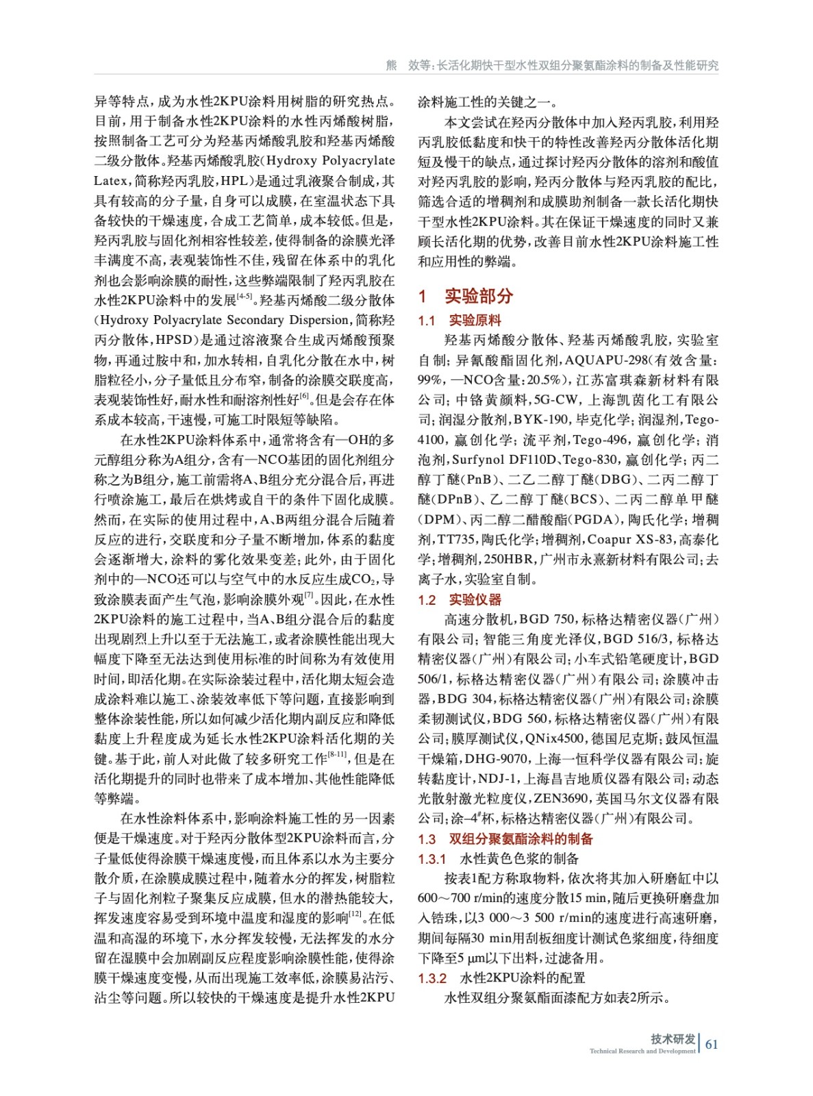 長(zhǎng)活化期快干型水性雙組分聚氨酯涂料的制備及性能研究