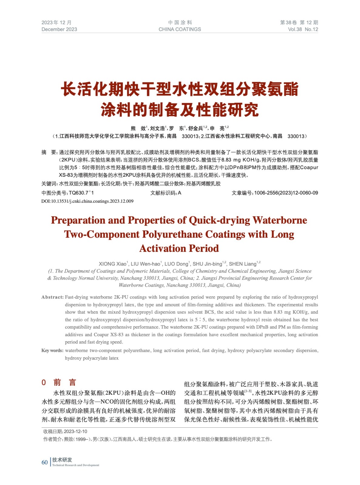 本文系作者@熊 效,劉文浩,羅 東,舒金兵,申 亮 授權(quán)中國(guó)涂料網(wǎng)發(fā)表,并經(jīng)中國(guó)涂料網(wǎng)編輯,未經(jīng)允許不得轉(zhuǎn)載,如需轉(zhuǎn)載請(qǐng)聯(lián)系chinacoatingnet@vip.163.com