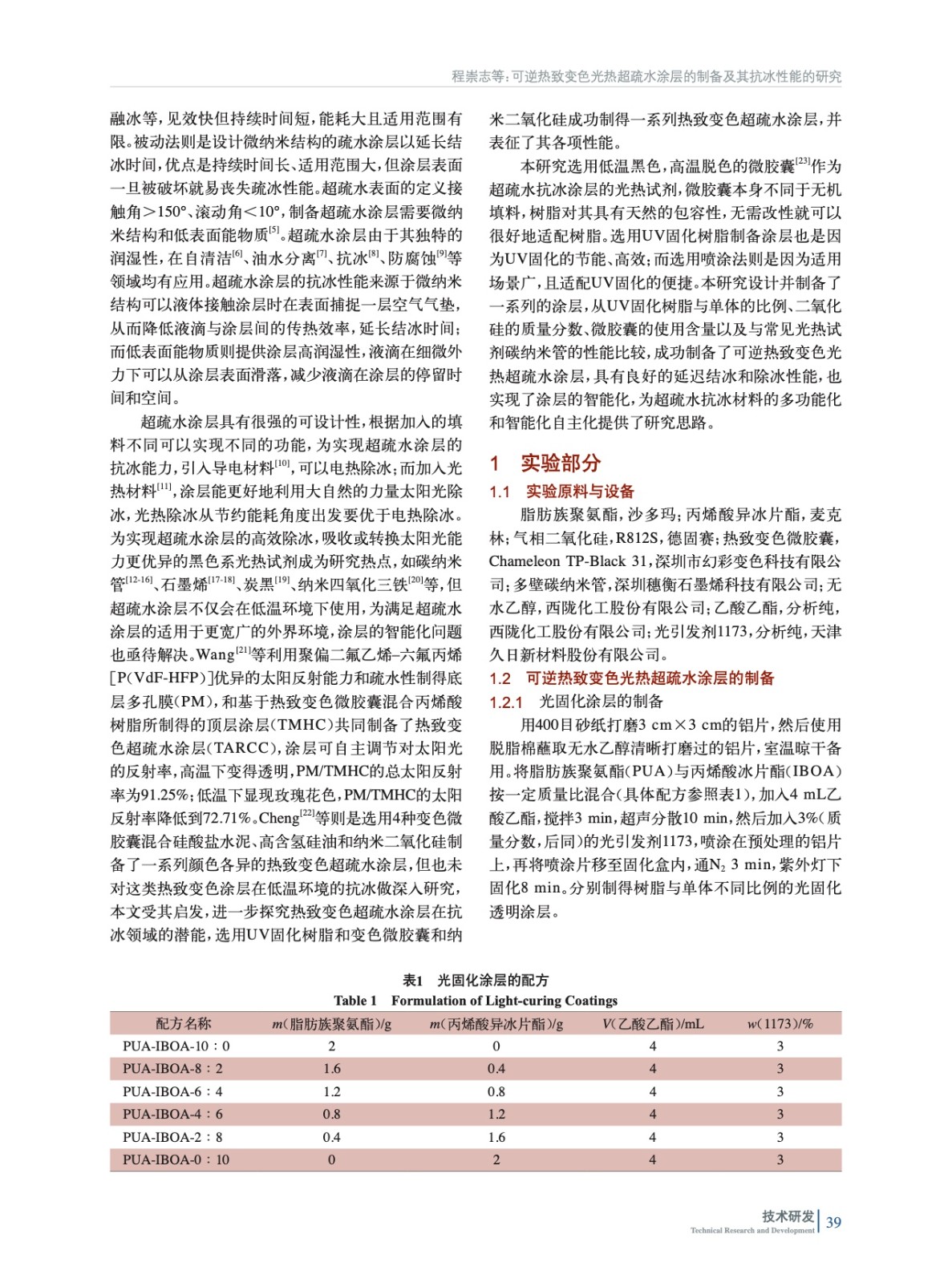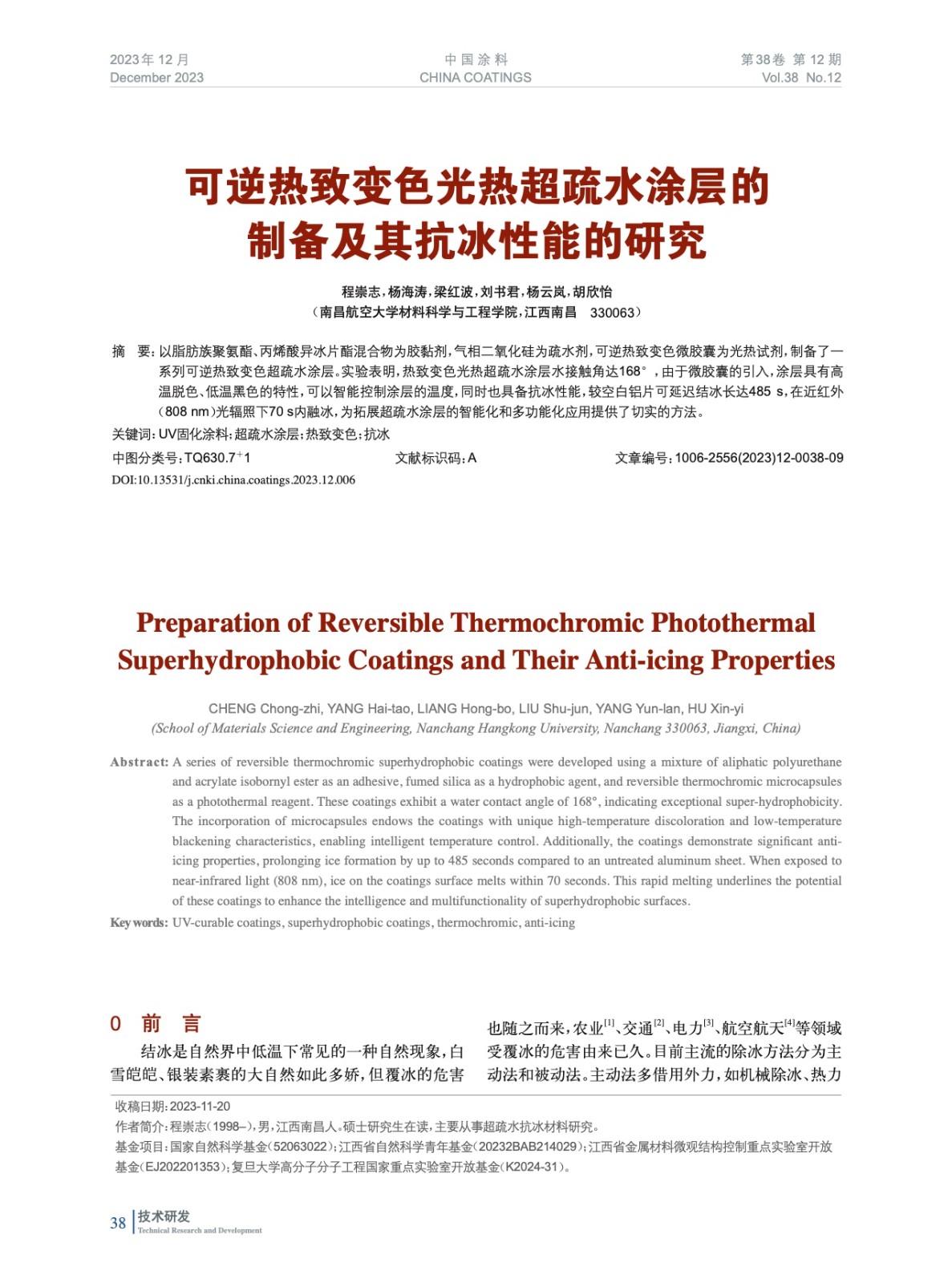 可逆熱致變色光熱超疏水涂層的制備及其抗冰性能的研究