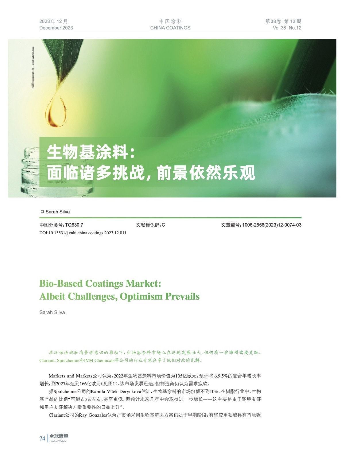 編者按:在環保法規和消費者意識的推動下,生物基涂料市場正在迅速發展壯大,但仍有一些障礙需要克服。Clariant、Spolchemie和IVM Chemicals等公司的行業專家分享了他們對此的見解。