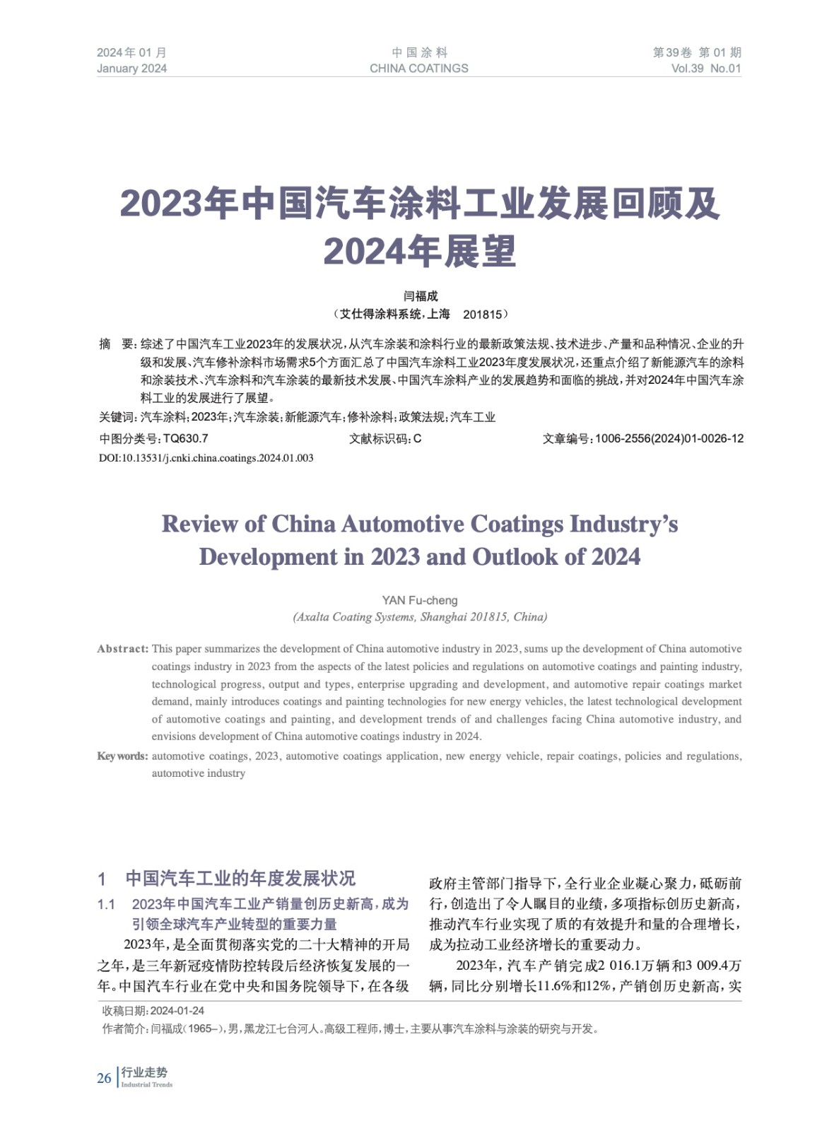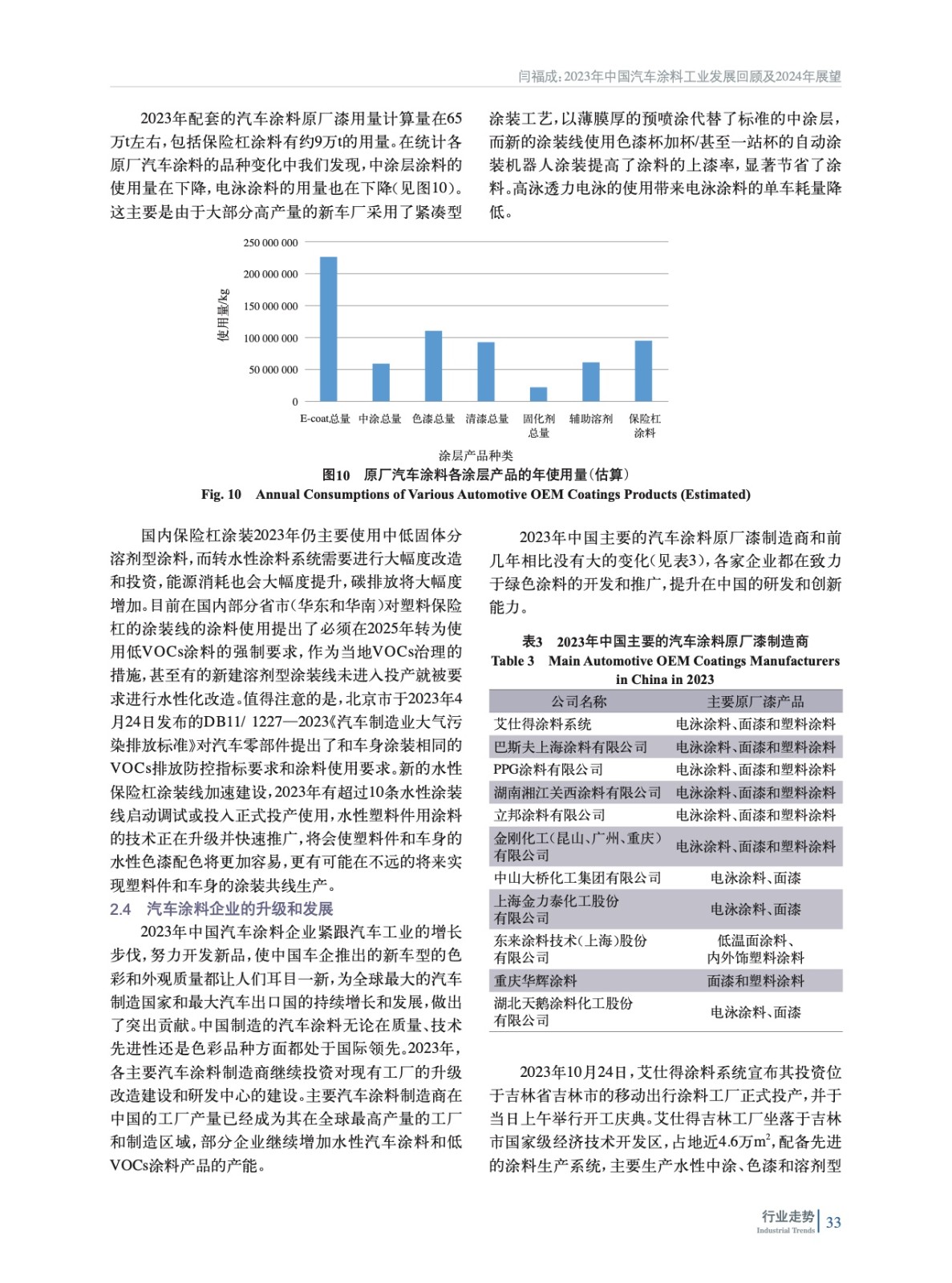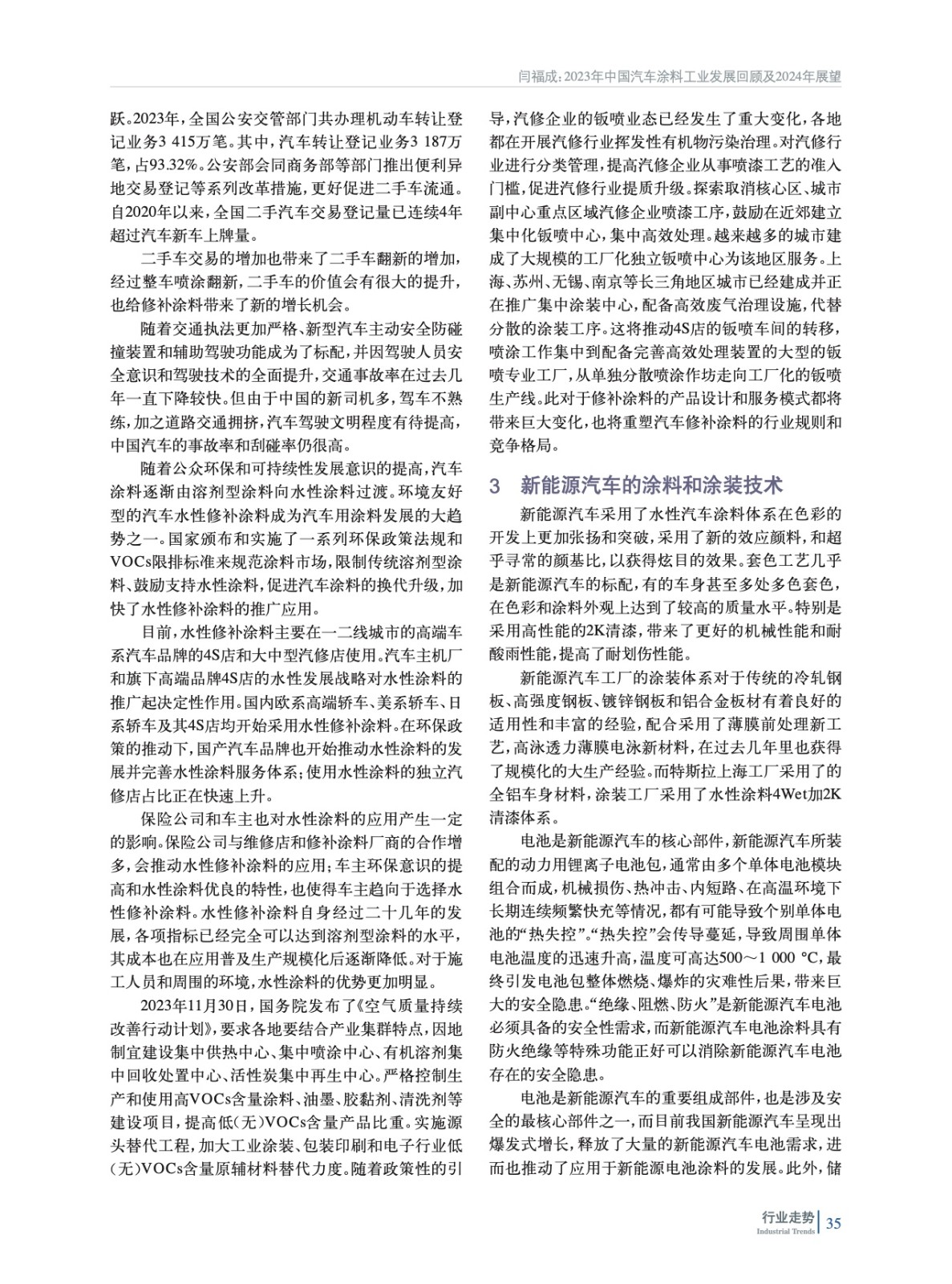 2023年中國汽車涂料工業發展回顧及2024年展望