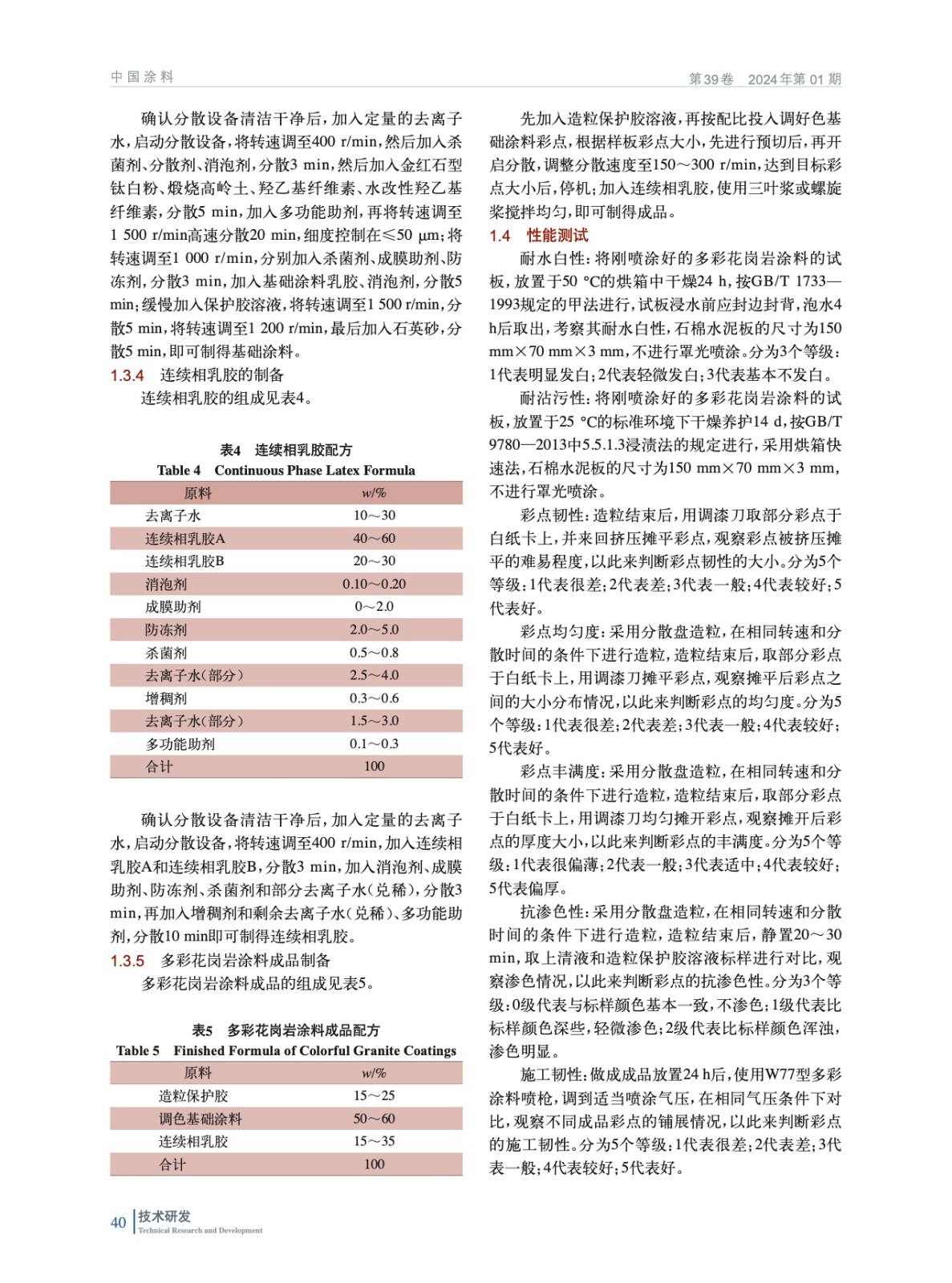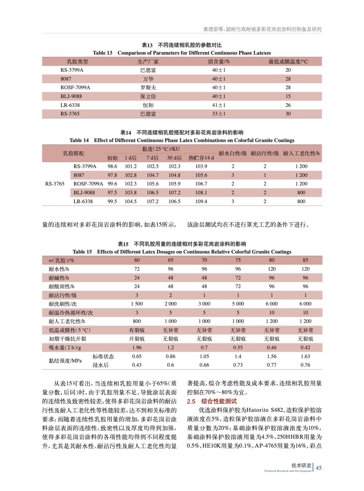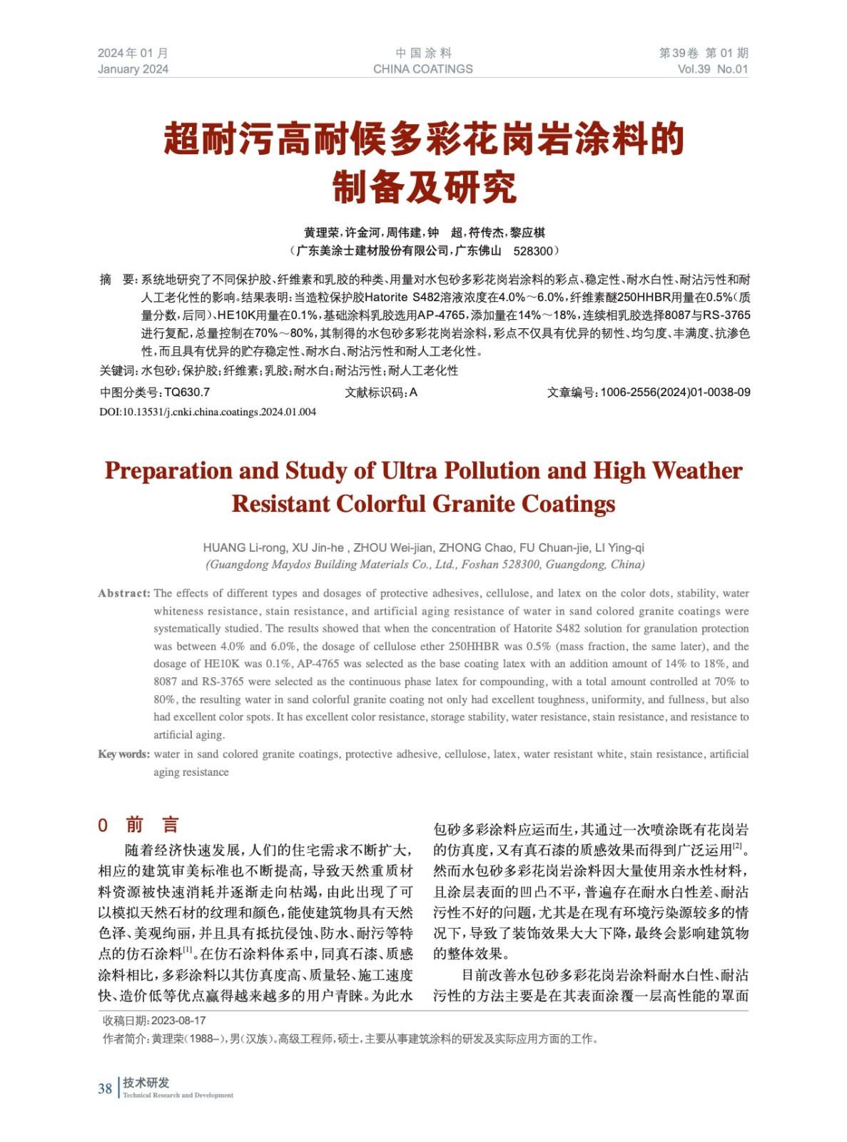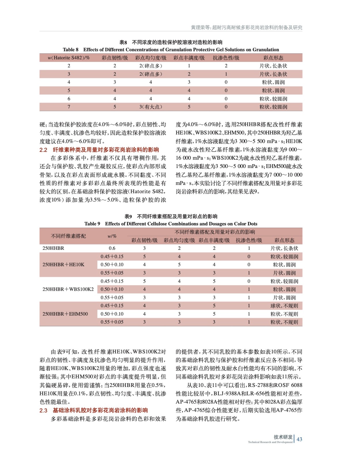 超耐污高耐候多彩花崗巖涂料的制備及研究