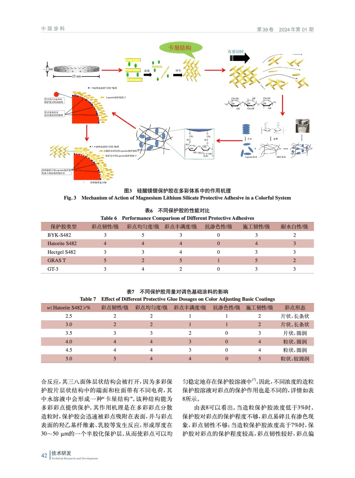 摘要:系統地研究了不同保護膠、纖維素和乳膠的種類、用量對水包砂多彩花崗巖涂料的彩點、穩定性、耐水白性、耐沾污性和耐人工老化性的影響。結果表明:當造粒保護膠Hatorite S482溶液濃度在4.0%~6.0%,纖維素醚250HHBR用量在0.5%(質量分數,后同)、HE10K用量在0.1%,基礎涂料乳膠選用AP-4765,添加量在14%~18%,連續相乳膠選擇8087與RS-3765進行復配,總量控制在70%~80%,其制得的水包砂多彩花崗巖涂料,彩點不僅具有優異的韌性、均勻度、豐滿度、抗滲色性,而且具有優異的貯存穩定性、耐水白、耐沾污性和耐人工老化性。
