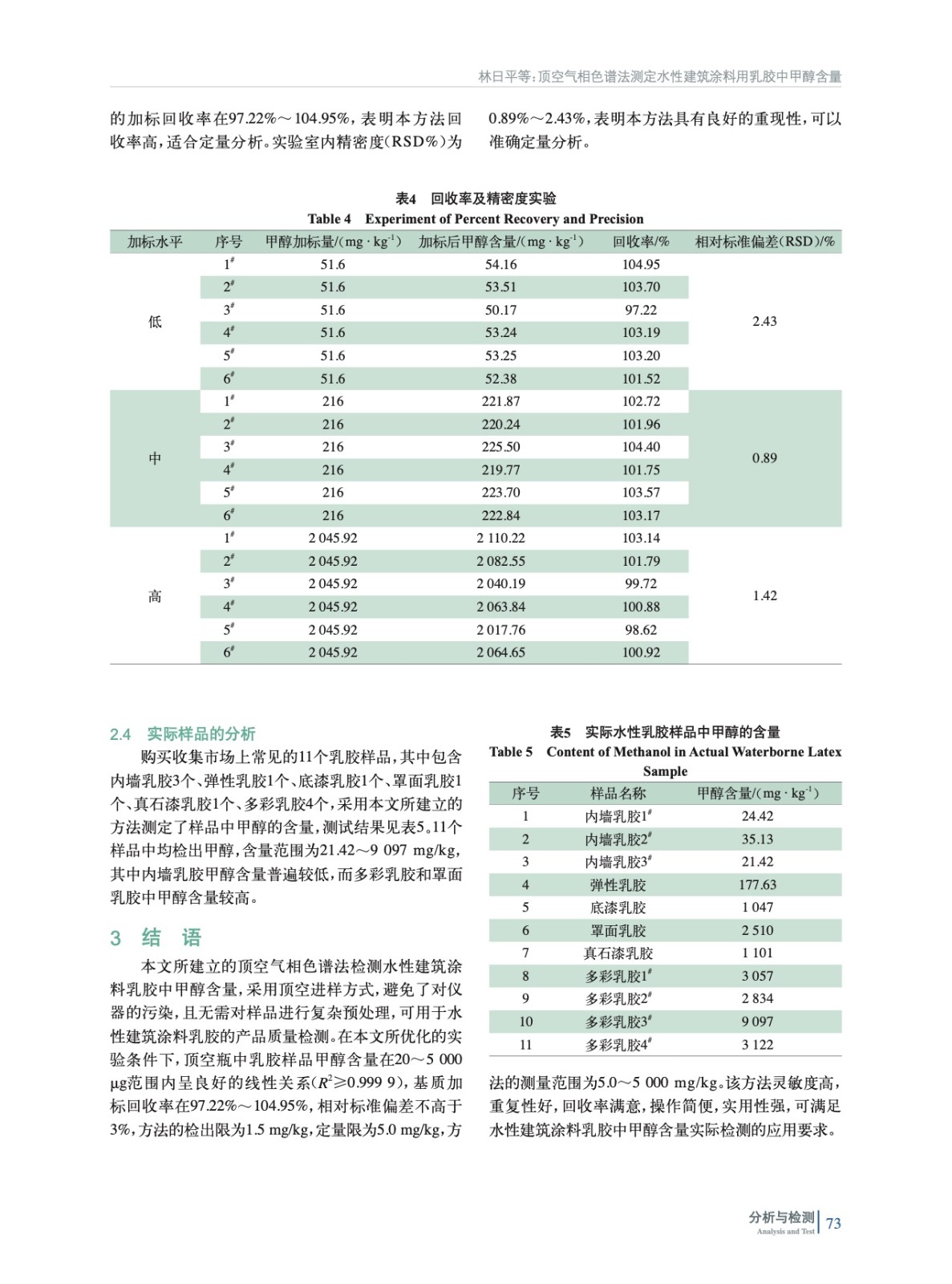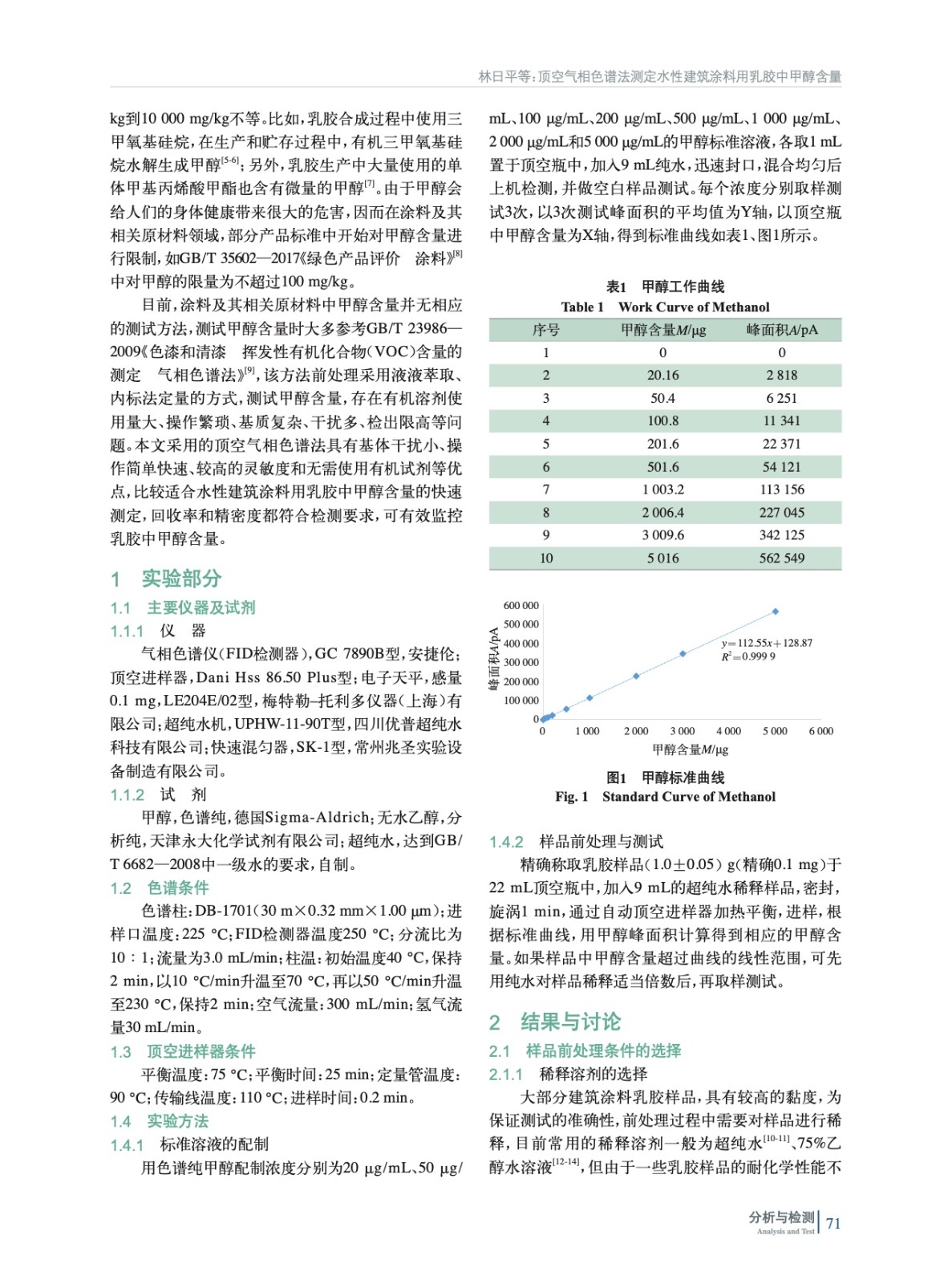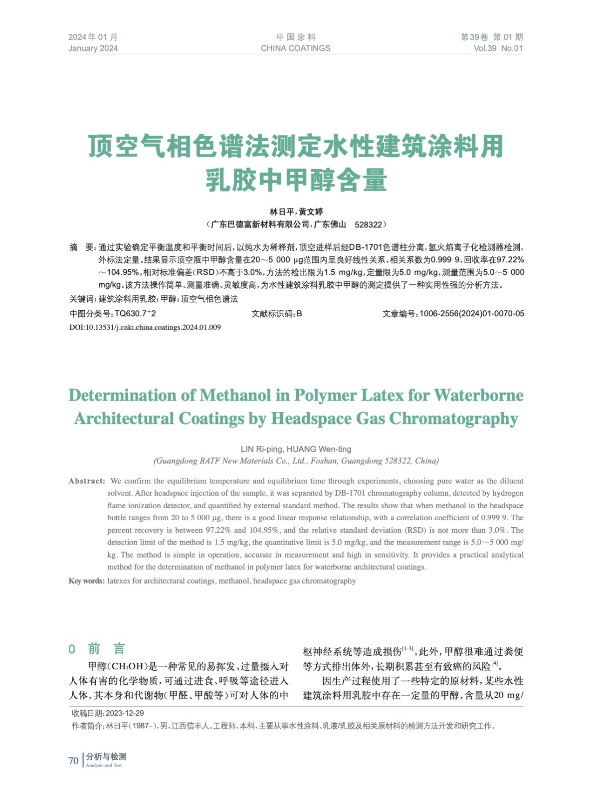 頂空氣相色譜法測定水性建筑涂料用乳膠中甲醇含量