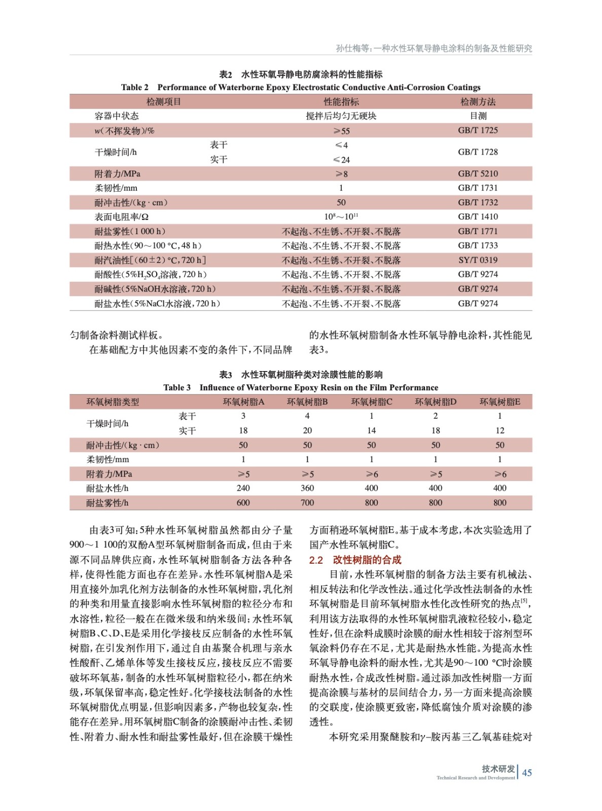 一種水性環(huán)氧導(dǎo)靜電涂料的制備及性能研究