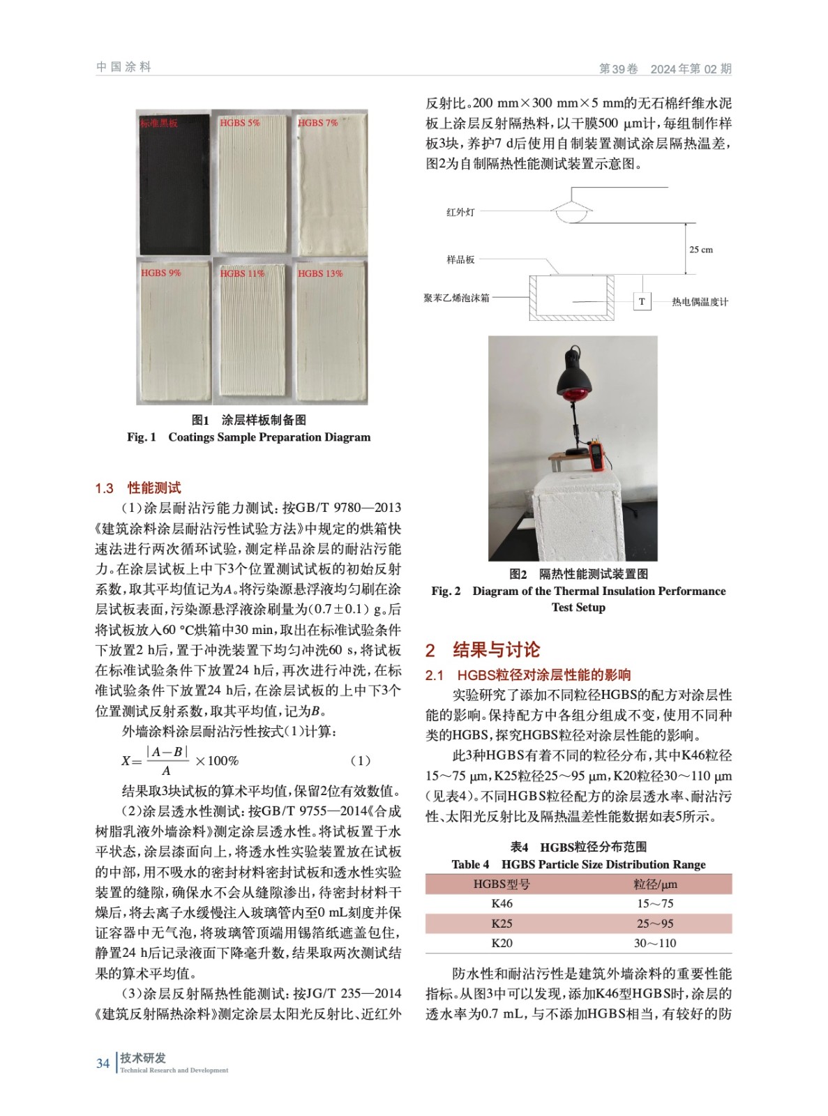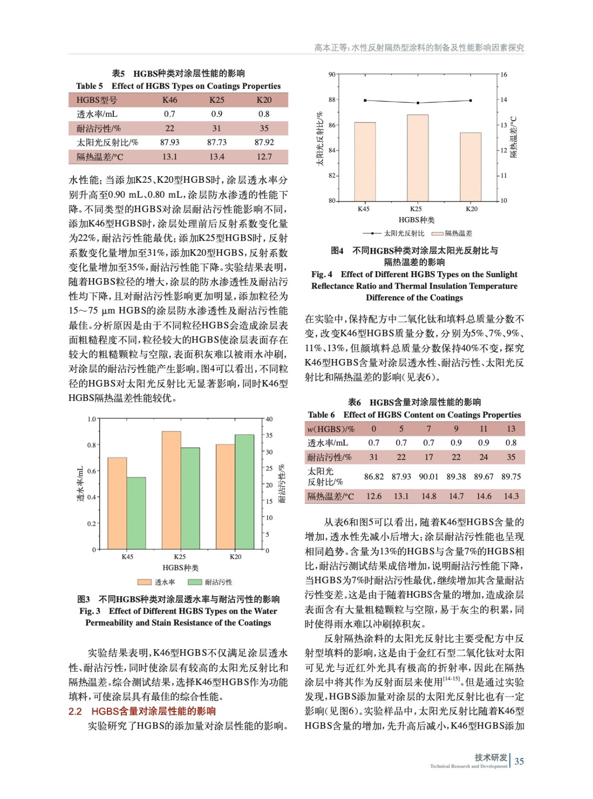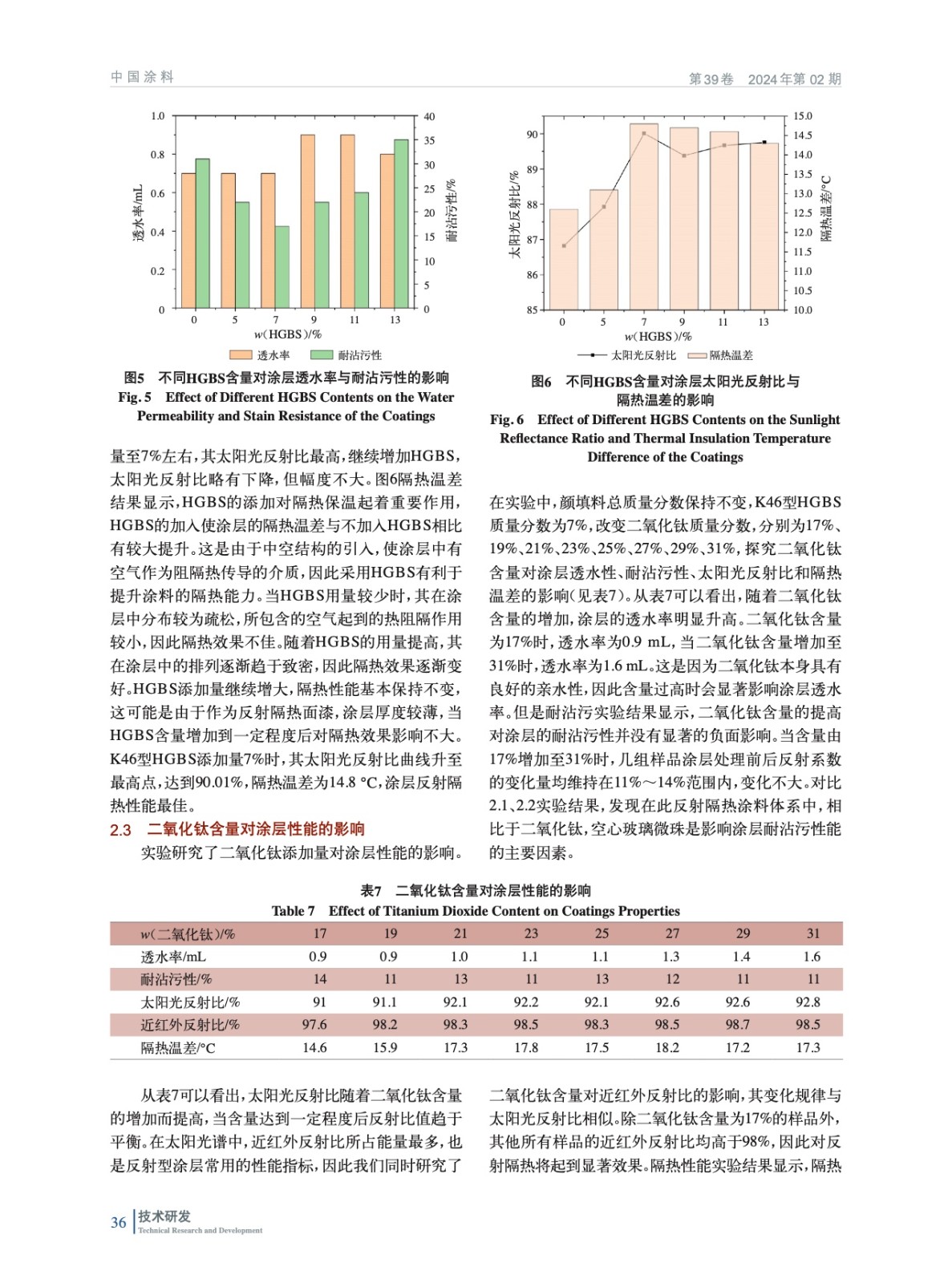 摘要:研究了反射隔熱涂料中重要組分對(duì)其性能的影響規(guī)律。以純丙乳膠作為成膜物,空心玻璃微珠和金紅石型二氧化鈦?zhàn)鳛楣δ芴盍希诨九浞襟w系基礎(chǔ)上,通過(guò)單一變量控制法研究了空心玻璃微珠、金紅石型二氧化鈦的尺寸及添加量等因素對(duì)反射隔熱涂料透水及耐沾污性、太陽(yáng)光反射性能和隔熱性能的影響規(guī)律,并制備得到綜合性能優(yōu)異的水性反射隔熱涂料。研究結(jié)果表明,反射隔熱填料不僅影響涂層的太陽(yáng)光反射和隔熱性能,對(duì)于涂層的耐水和耐沾污性也有顯著影響。