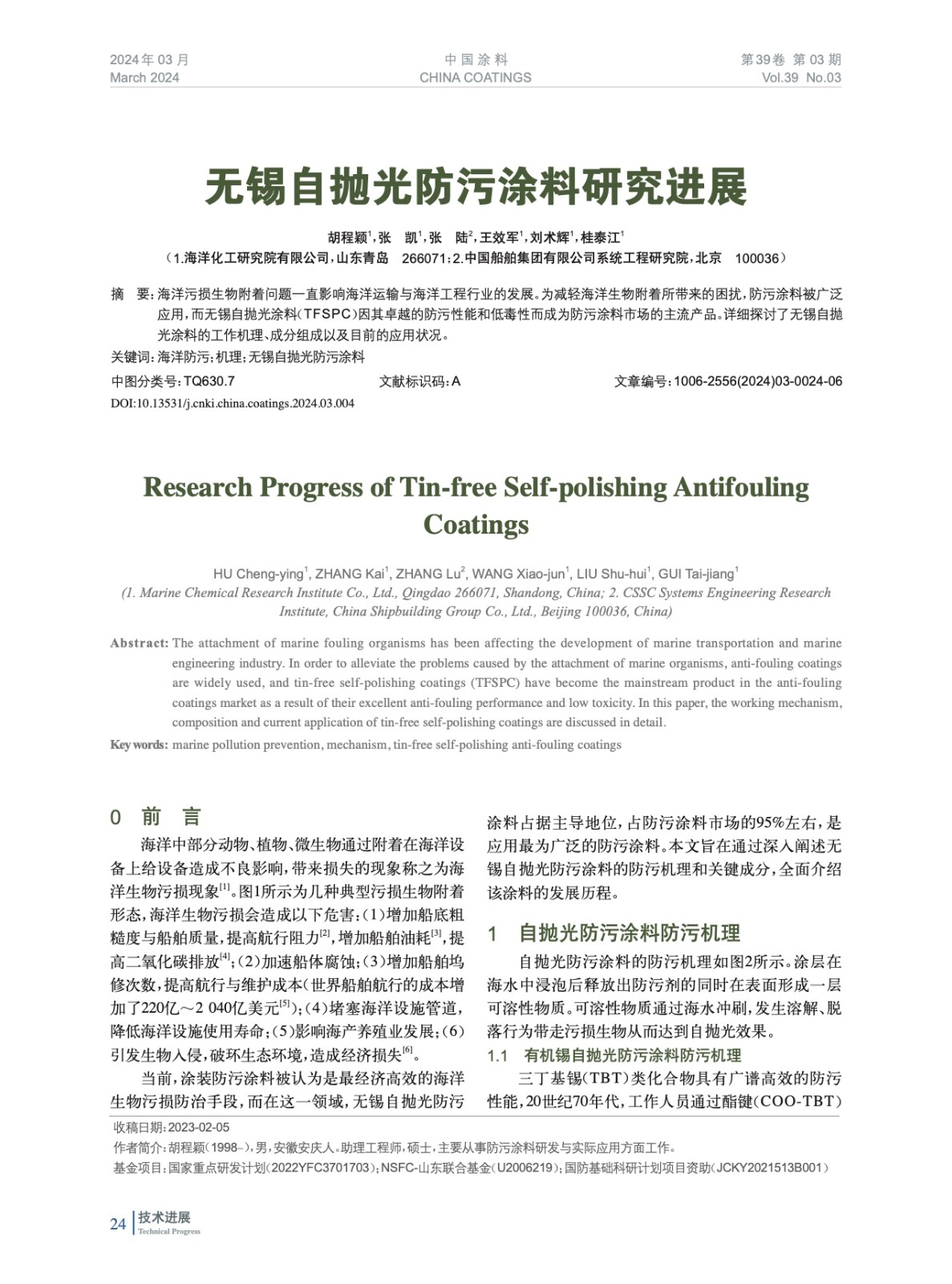 本文系作者@胡程穎,張 凱,張 陸,王效軍,劉術輝,桂泰江 授權中國涂料網發表,并經中國涂料網編輯,未經允許不得轉載,如需轉載請聯系chinacoatingnet@vip.163.com