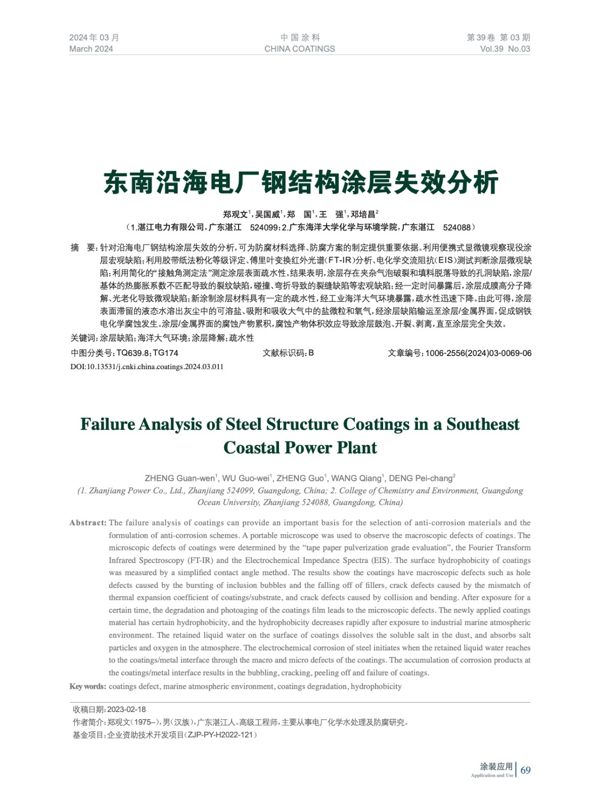 本文系作者@鄭觀文,吳國威,鄭 國,王 強,鄧培昌 授權中國涂料網發表,并經中國涂料網編輯,未經允許不得轉載,如需轉載請聯系chinacoatingnet@vip.163.com