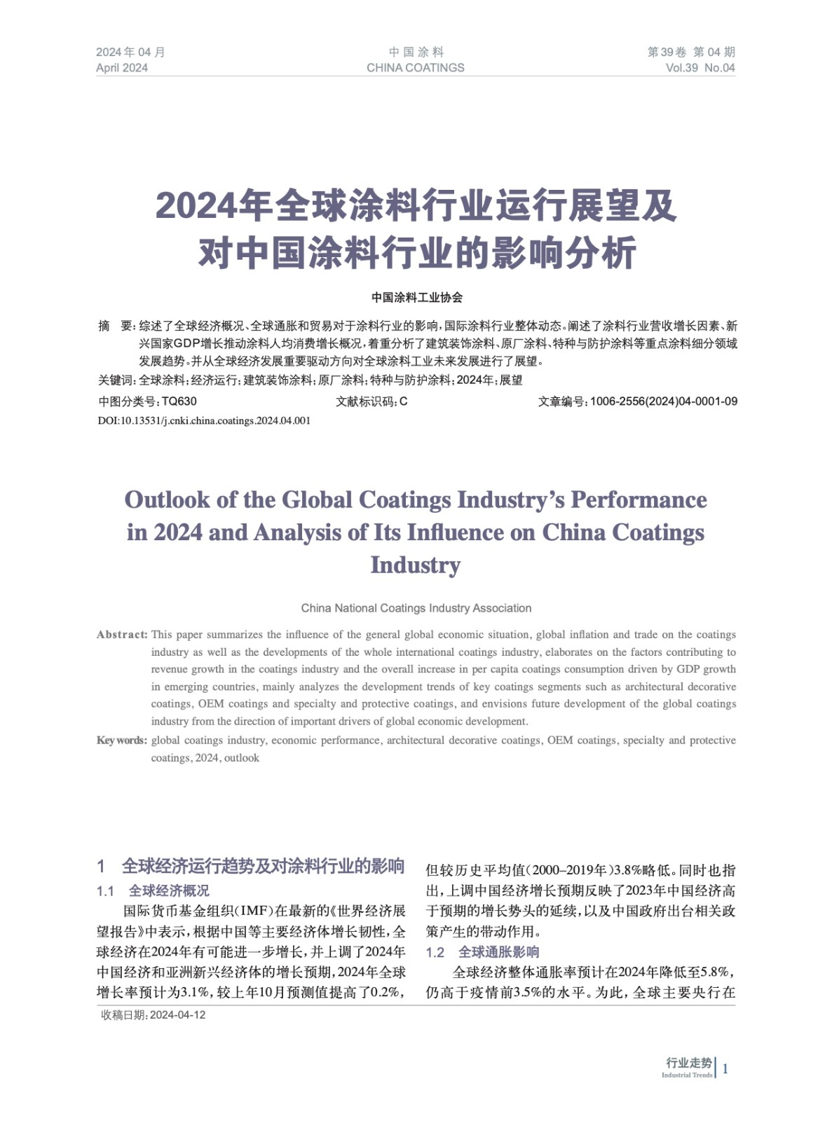 2024年全球涂料行業運行展望及對中國涂料行業的影響分析