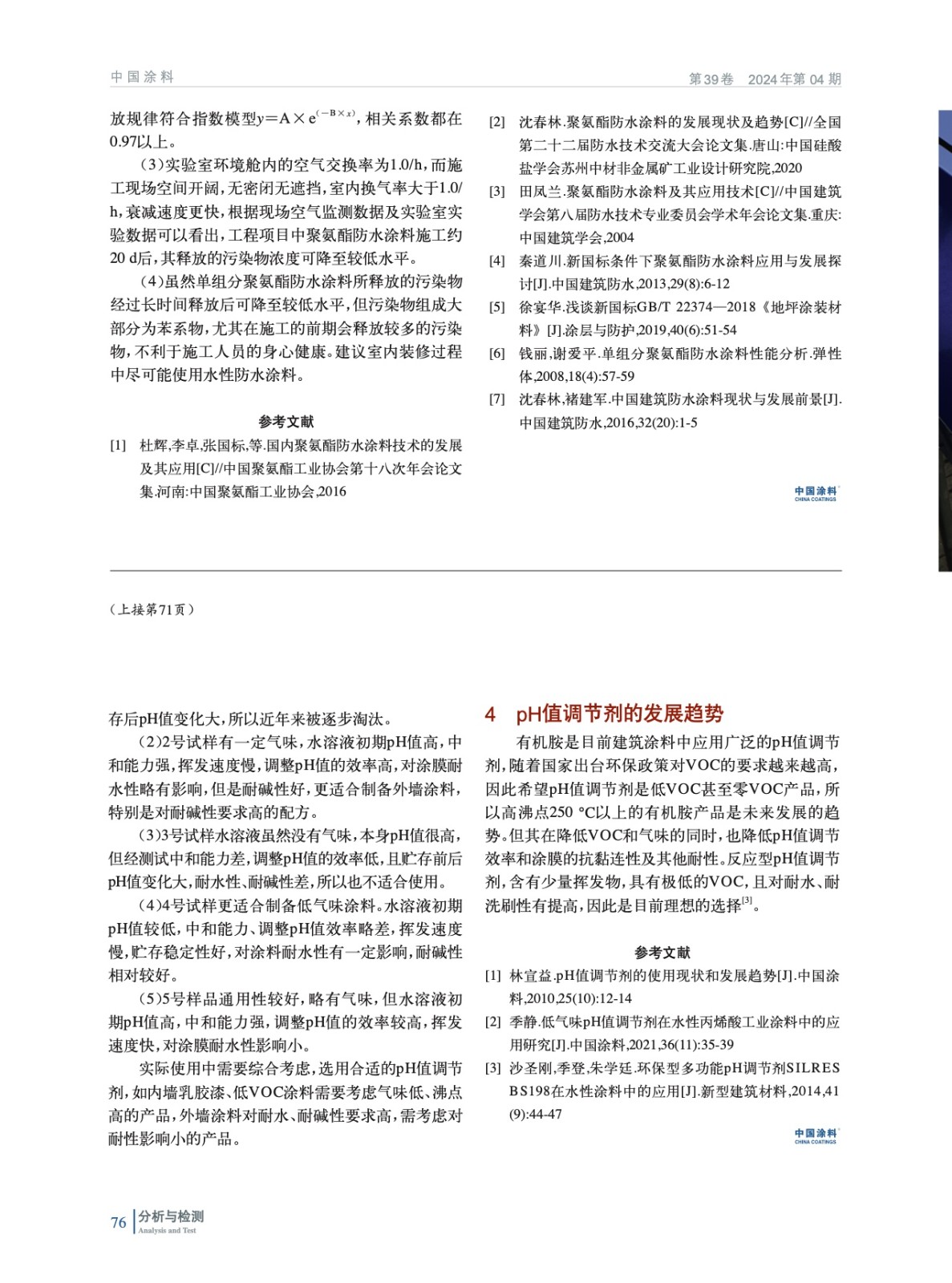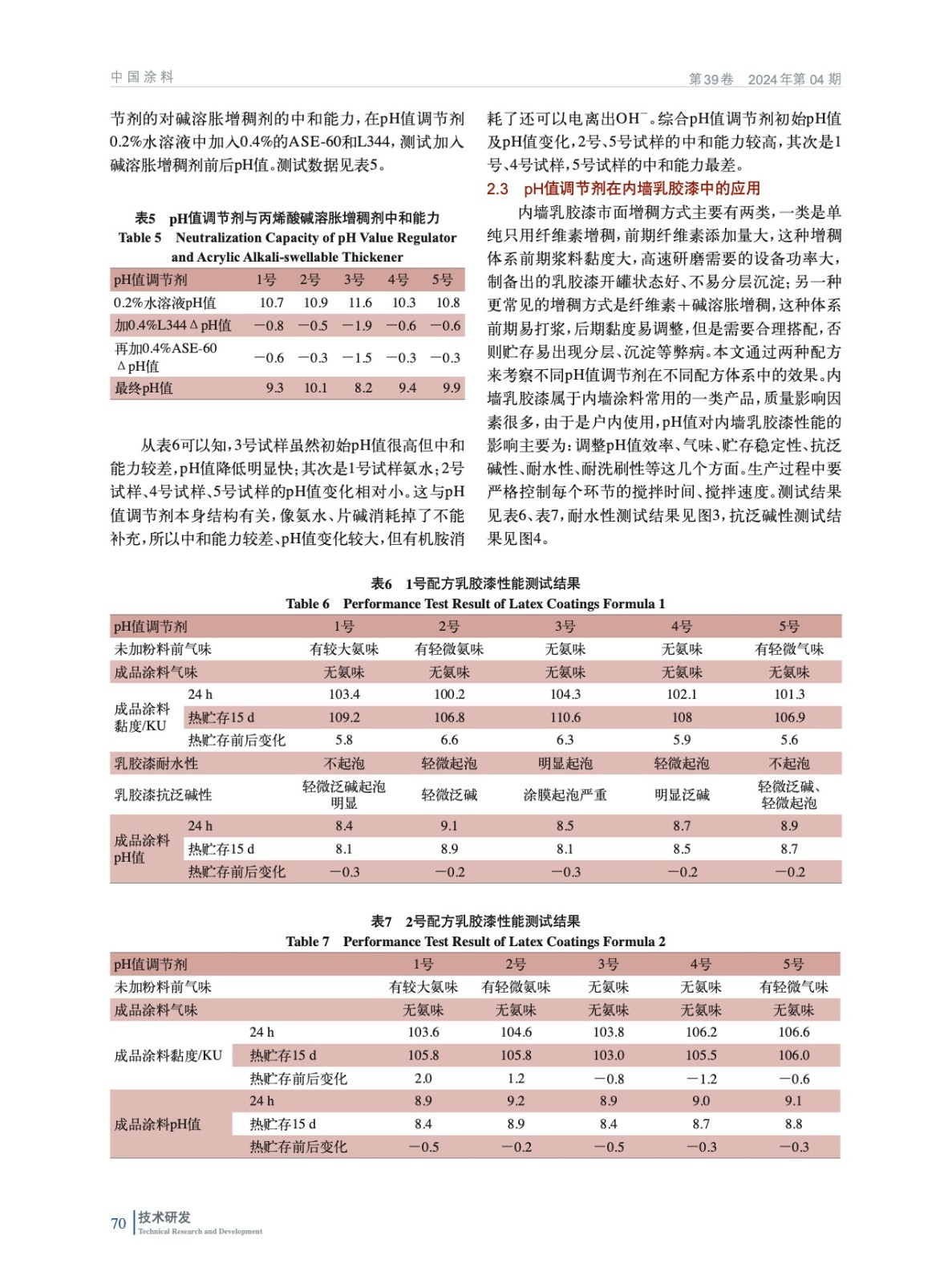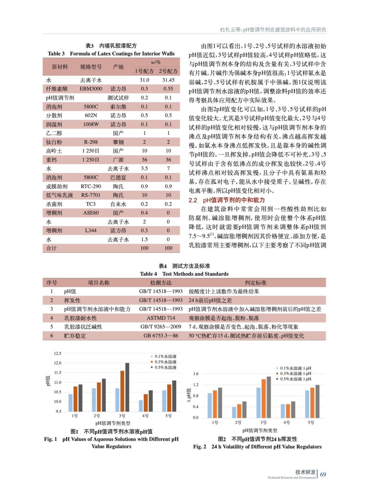 論述了市面常見pH值調節劑的性能特點、氣味大小、揮發速度、中和能力、pH值調節效率,以及在乳膠漆配方中其對涂料氣味、調整pH值效率、貯存穩定性、耐水性、抗泛堿性的影響,在實際中需要根據配方的性能需要選擇合適的pH值調節劑。