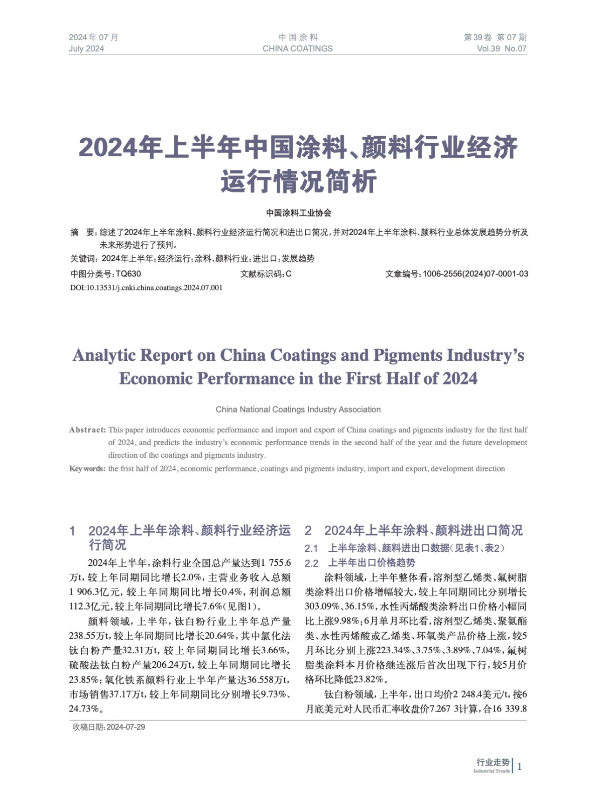 2024年上半年中國(guó)涂料、顏料行業(yè)經(jīng)濟(jì)運(yùn)行情況簡(jiǎn)析