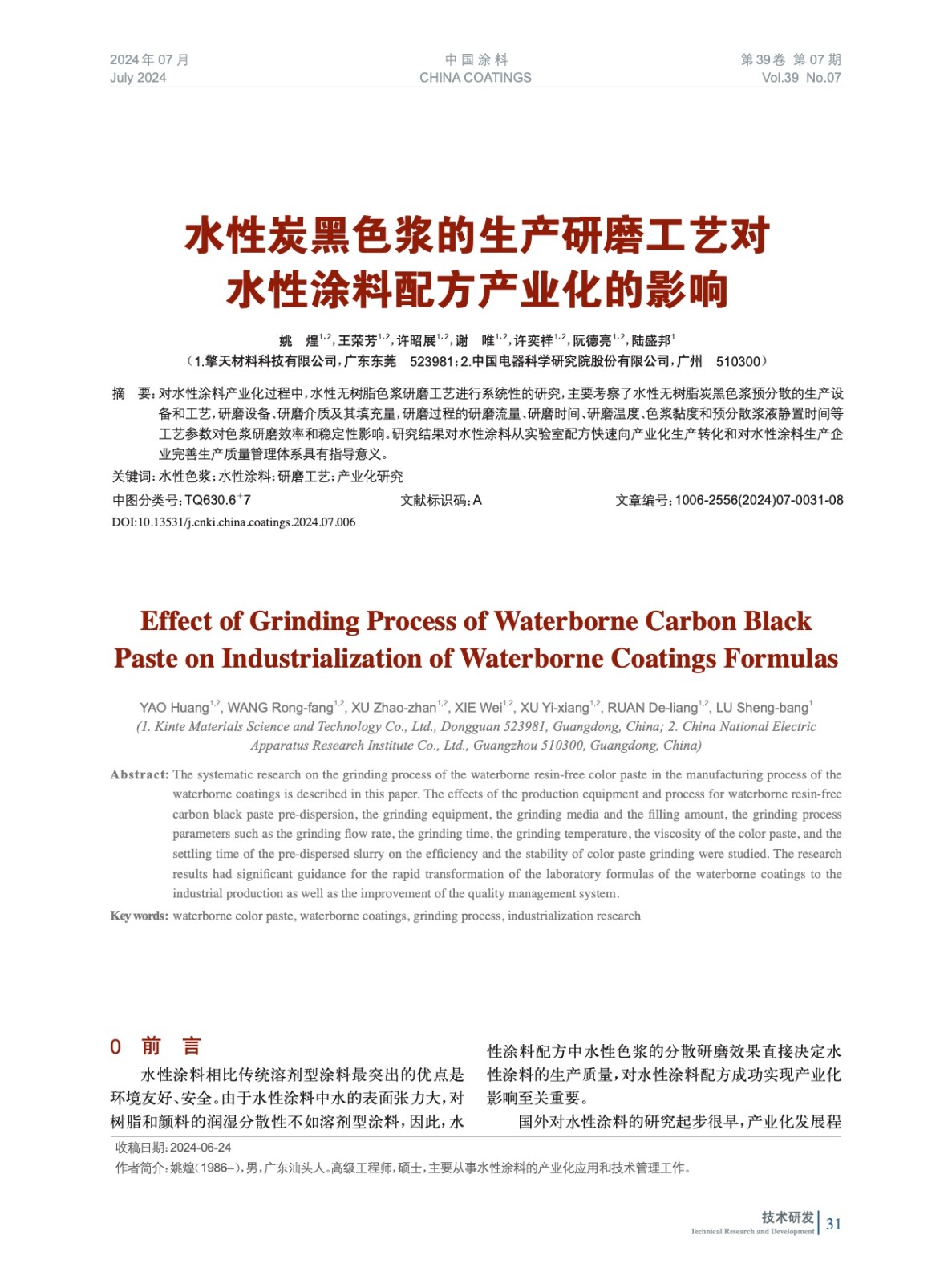 水性炭黑色漿的生產研磨工藝對水性涂料配方產業化的影響