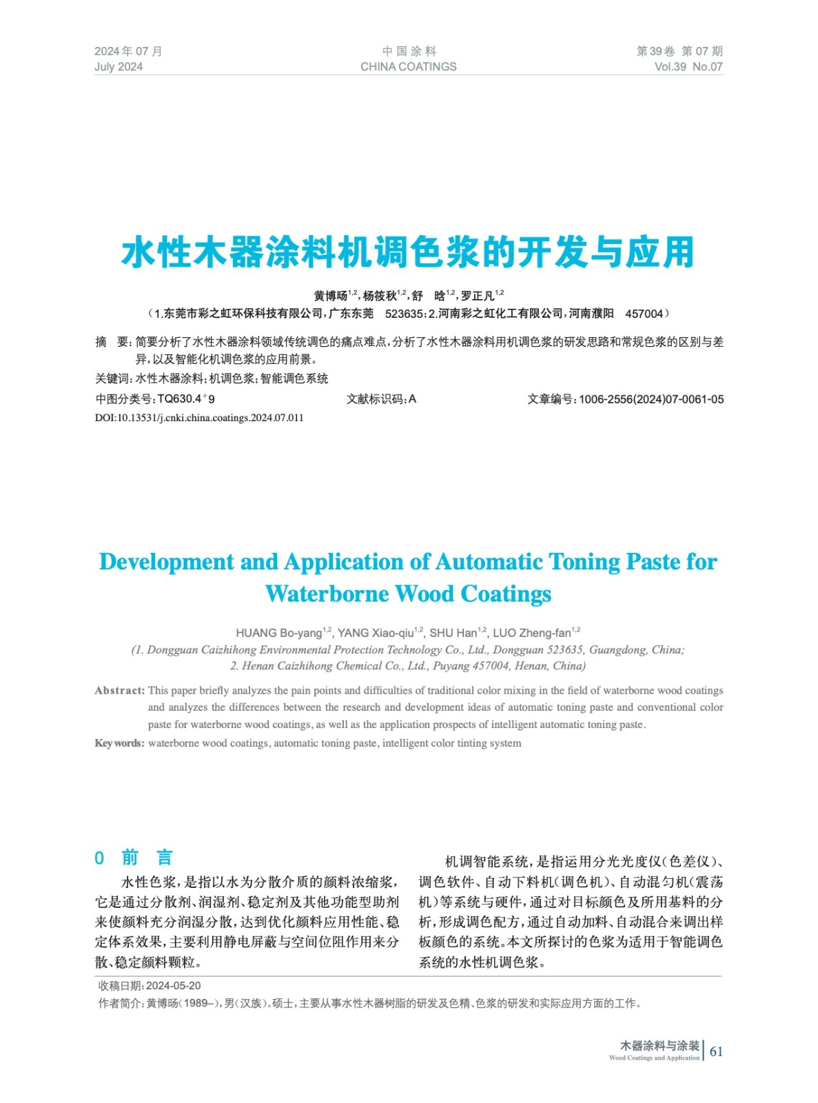 摘要:簡(jiǎn)要分析了水性木器涂料領(lǐng)域傳統(tǒng)調(diào)色的痛點(diǎn)難點(diǎn),分析了水性木器涂料用機(jī)調(diào)色漿的研發(fā)思路和常規(guī)色漿的區(qū)別與差異,以及智能化機(jī)調(diào)色漿的應(yīng)用前景。