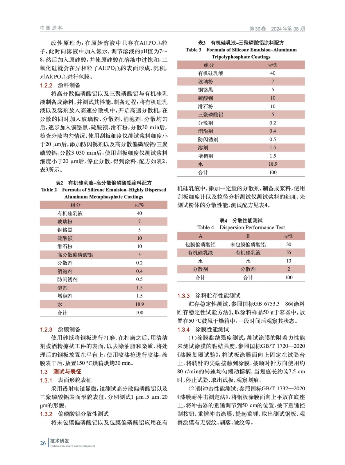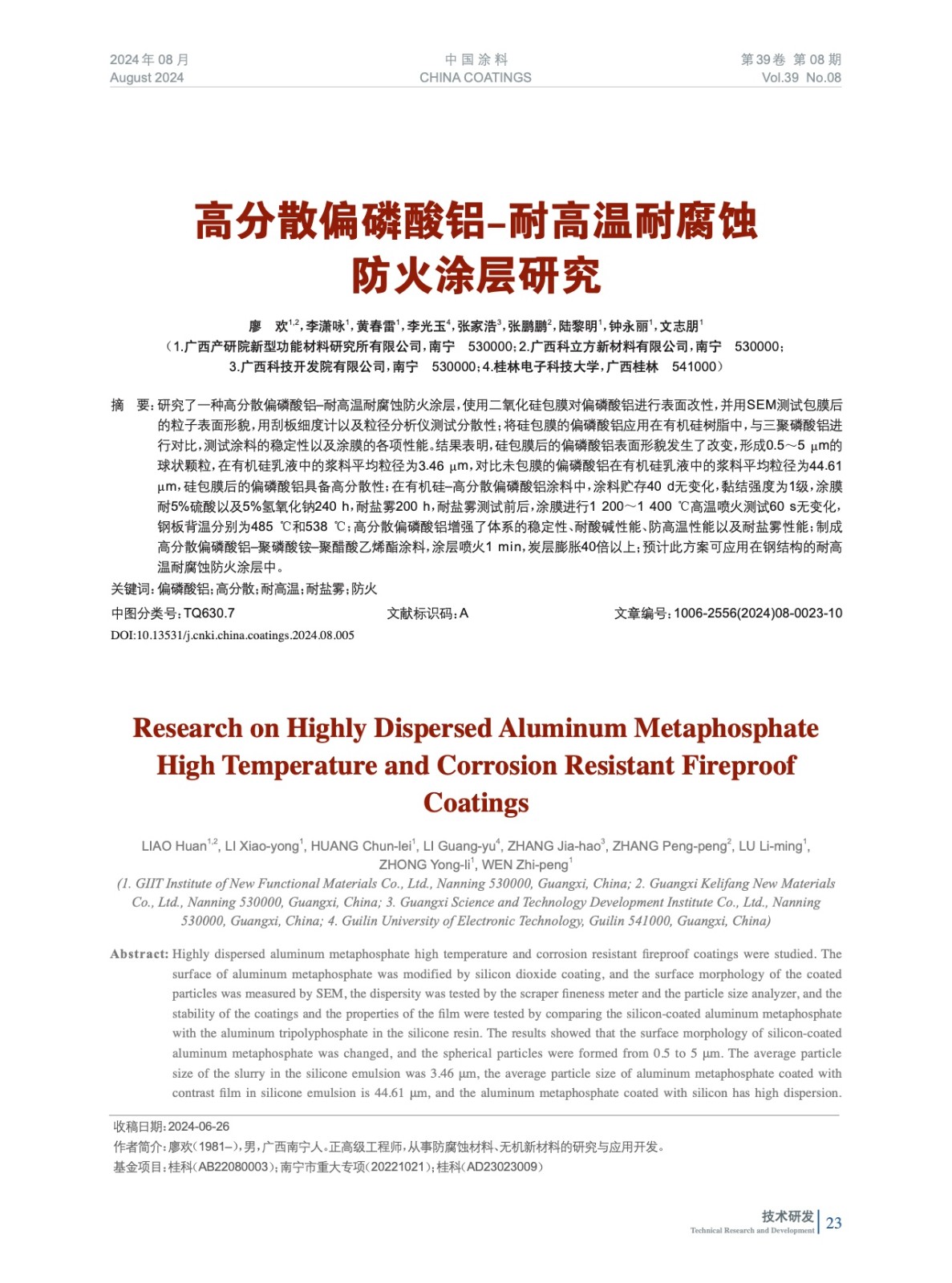 高分散偏磷酸鋁–耐高溫耐腐蝕防火涂層研究