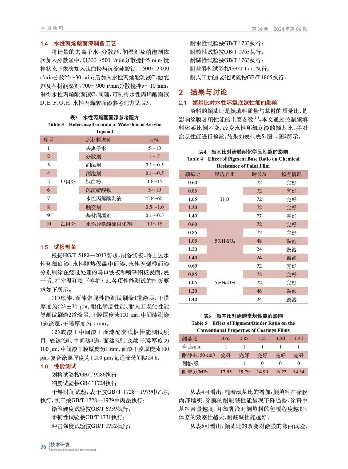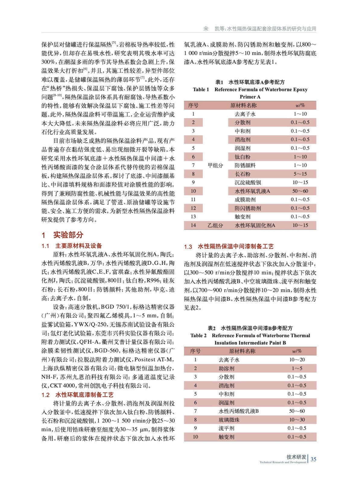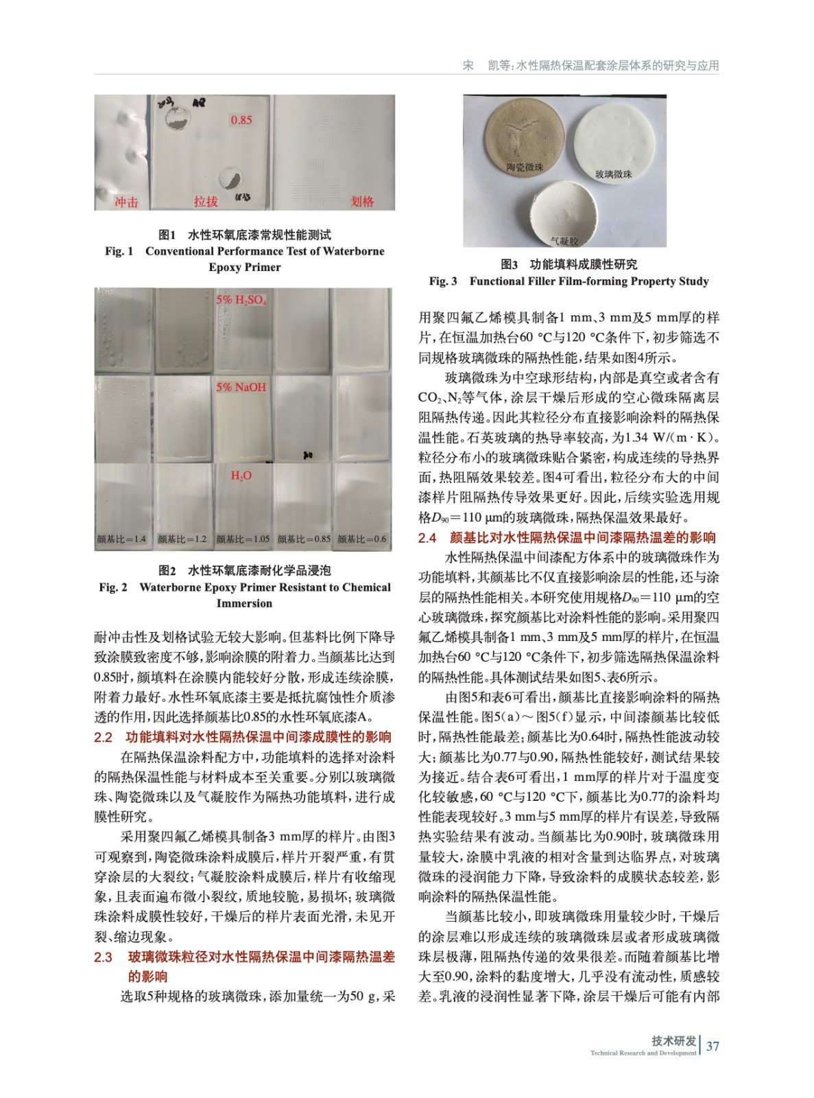 摘要:以“水性環氧底漆+水性隔熱保溫中間漆+水性丙烯酸面漆”構建隔熱保溫配套涂層體系。通過測試其耐腐蝕性、耐老化性、隔熱保溫等性能,對隔熱保溫配套涂層的性能進行評價。結果表明:水性環氧底漆A顏基比為0.85;水性隔熱保溫中間漆B選用規格為D90=110 μm的玻璃微珠,顏基比為0.77;水性丙烯酸面漆H羥值為4.2,n(—NCO)/n(—OH)=1時,涂層配套體系兼顧隔熱性能與耐腐蝕性,表現良好。