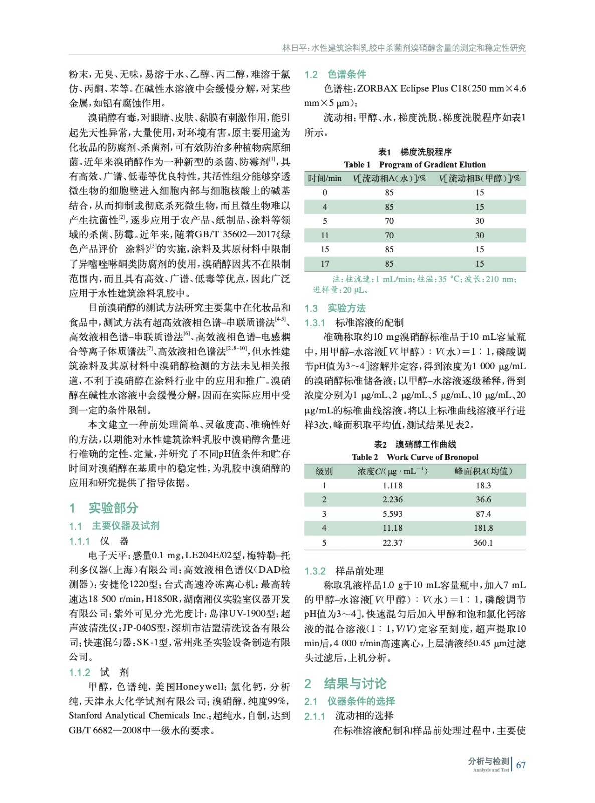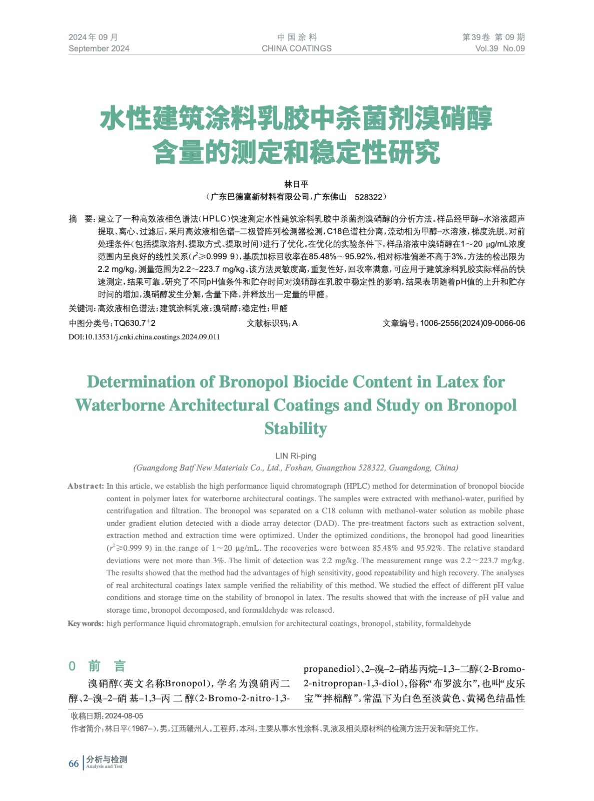 水性建筑涂料乳膠中殺菌劑溴硝醇含量的測定和穩定性研究
