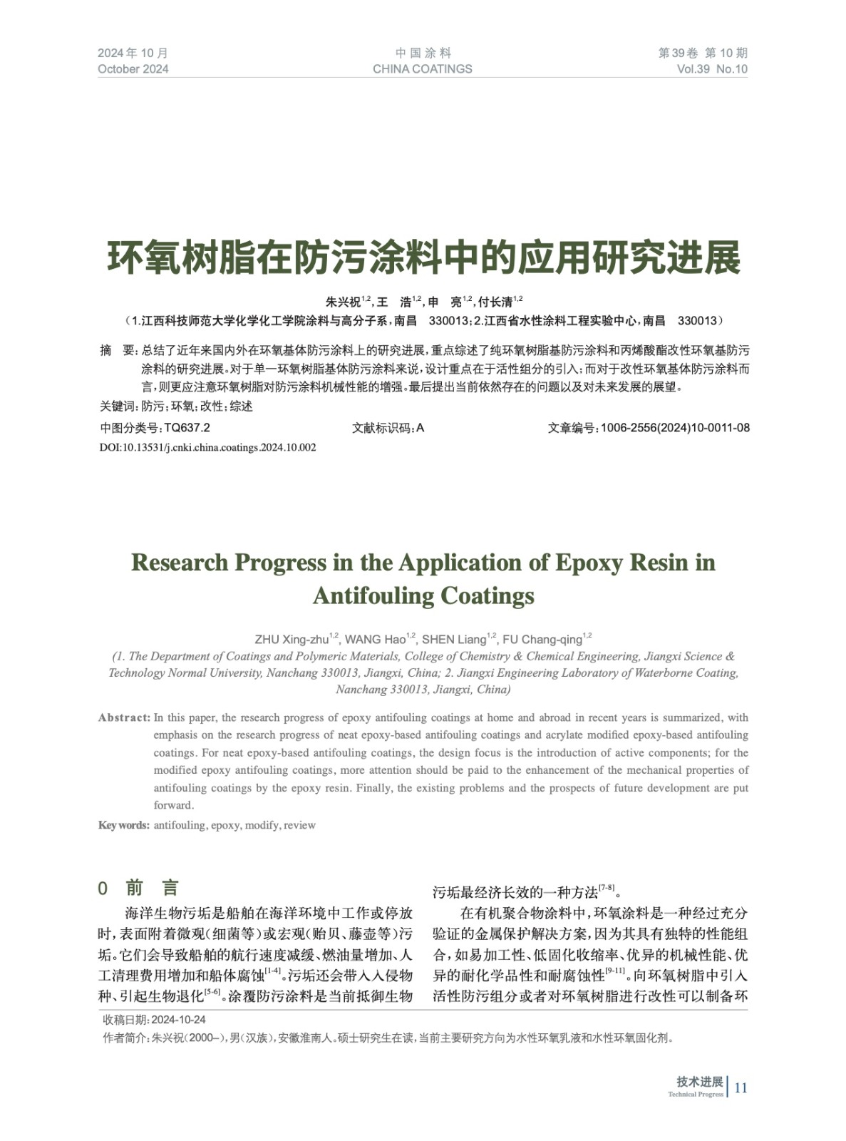 本文系作者@朱興祝,王 浩,申 亮,付長清 授權中國涂料網發表,并經中國涂料網編輯,未經允許不得轉載,如需轉載請聯系chinacoatingnet@vip.163.com